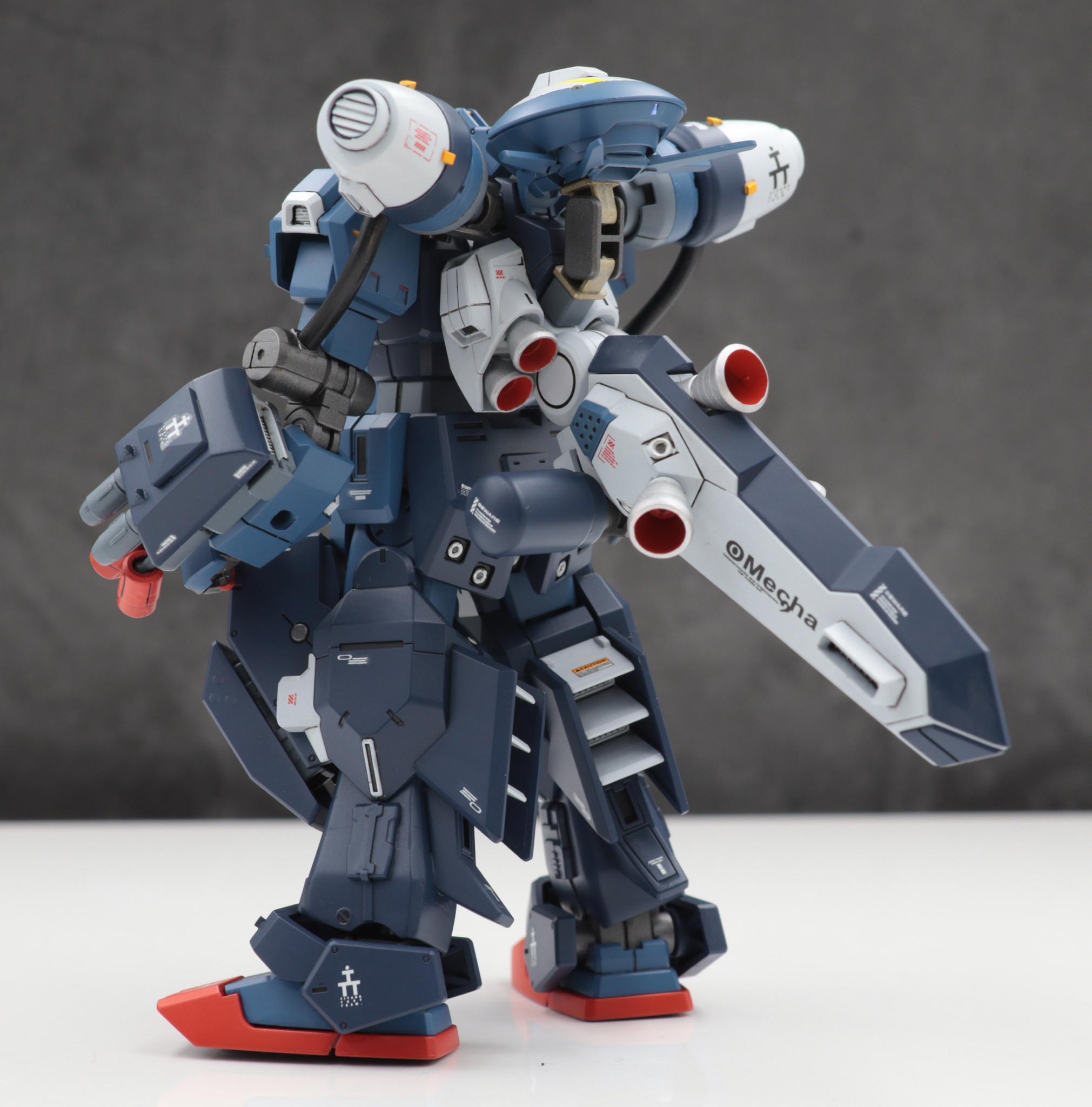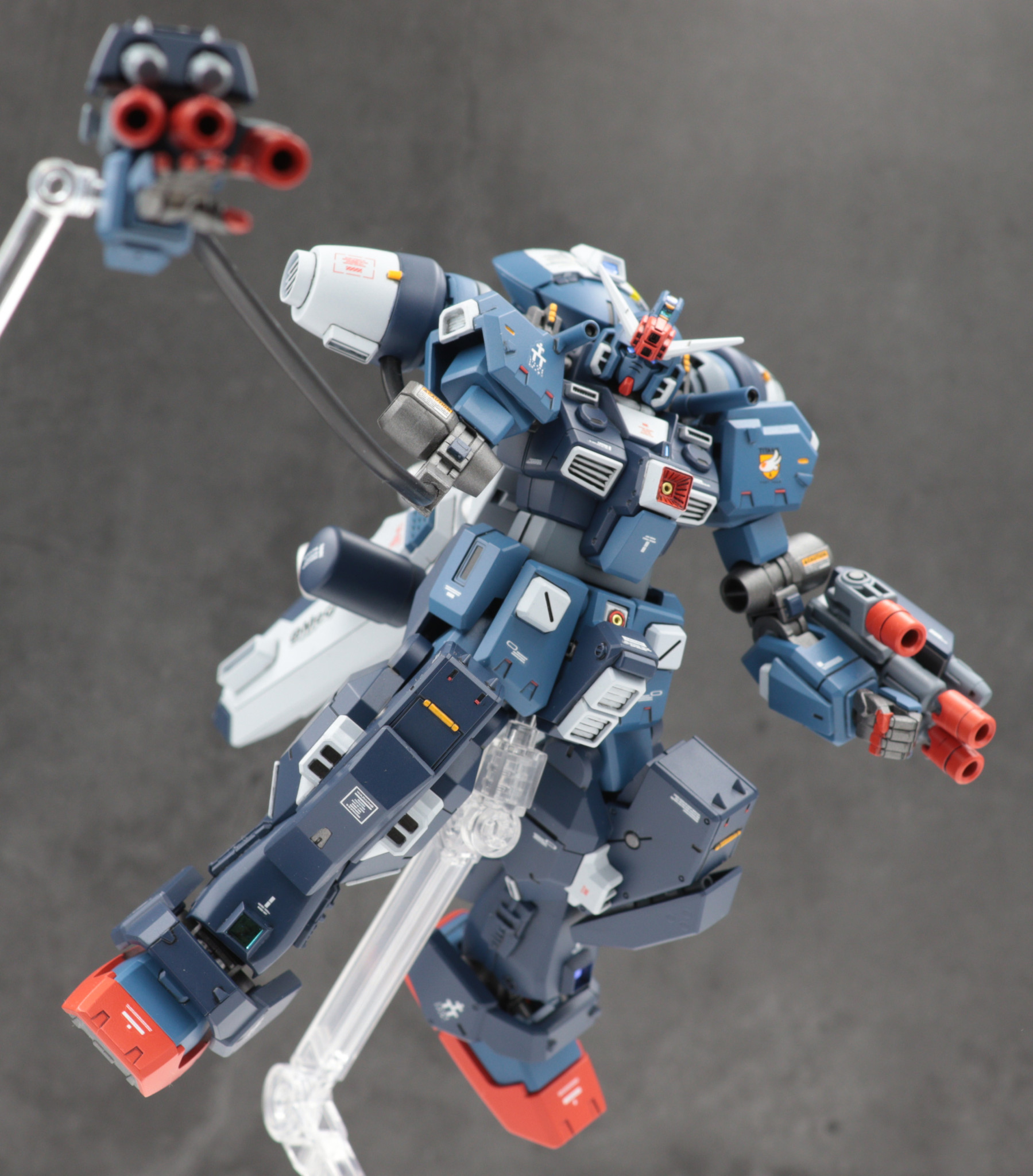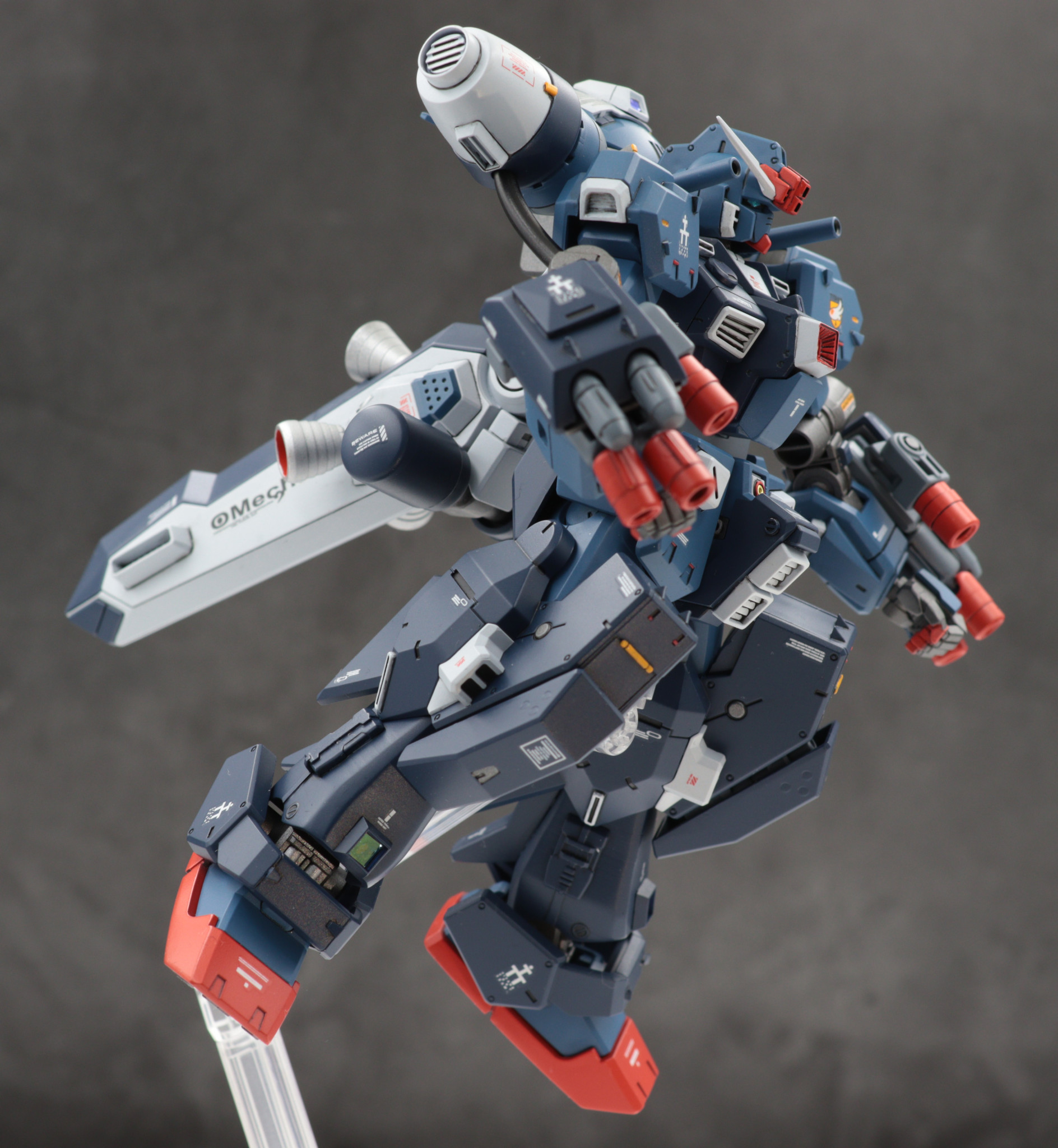 MSサイズにビーム兵器を積むにはエネルギーがすぐガス欠になると思い、バックパックは大型化。トライブースターやボリノークサマーンを参考に有線ケーブル収納タンクやプロペラントブースターにしてみました。