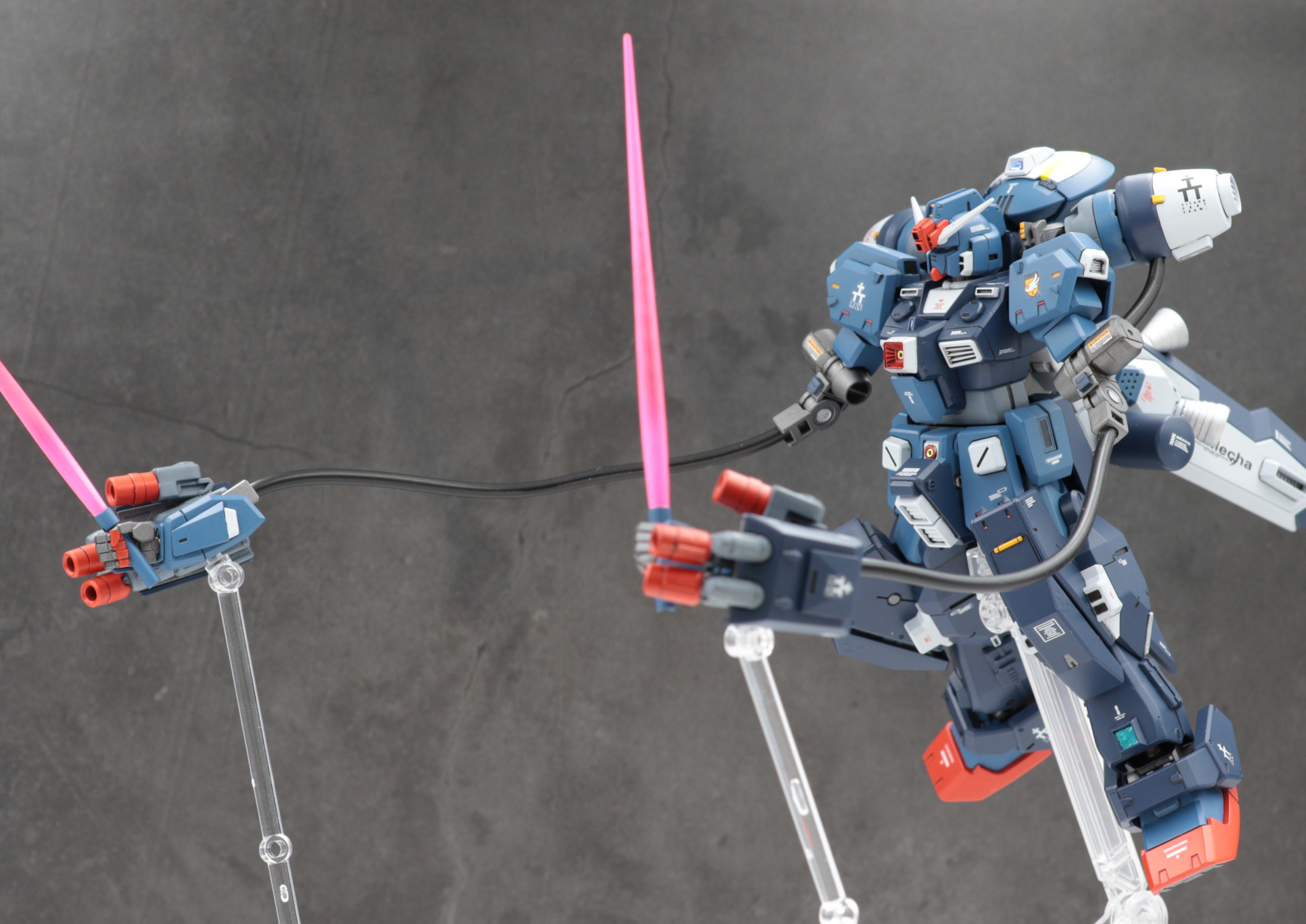 有線式サイコミュユニットには3連ビーム砲以外にグレネード、手のひらにはハンドビームガンといった設定です。