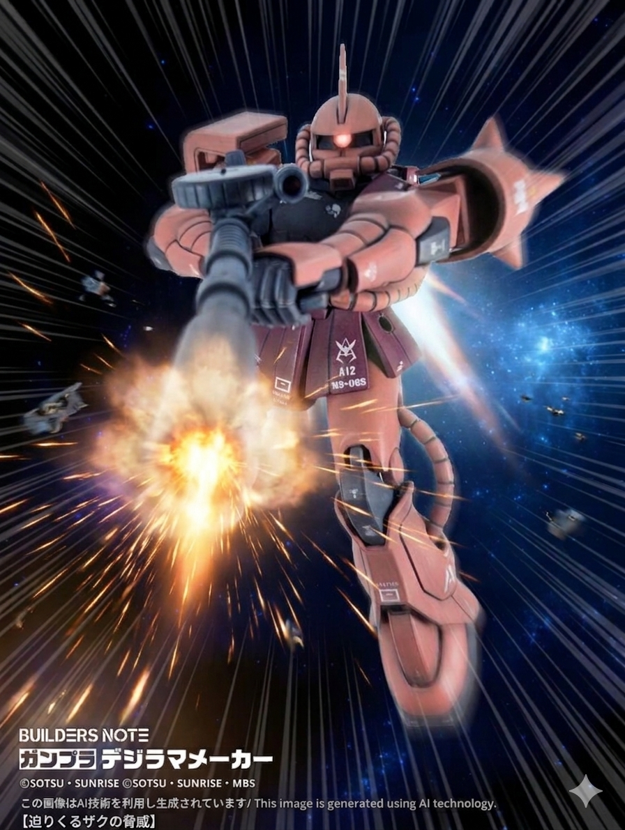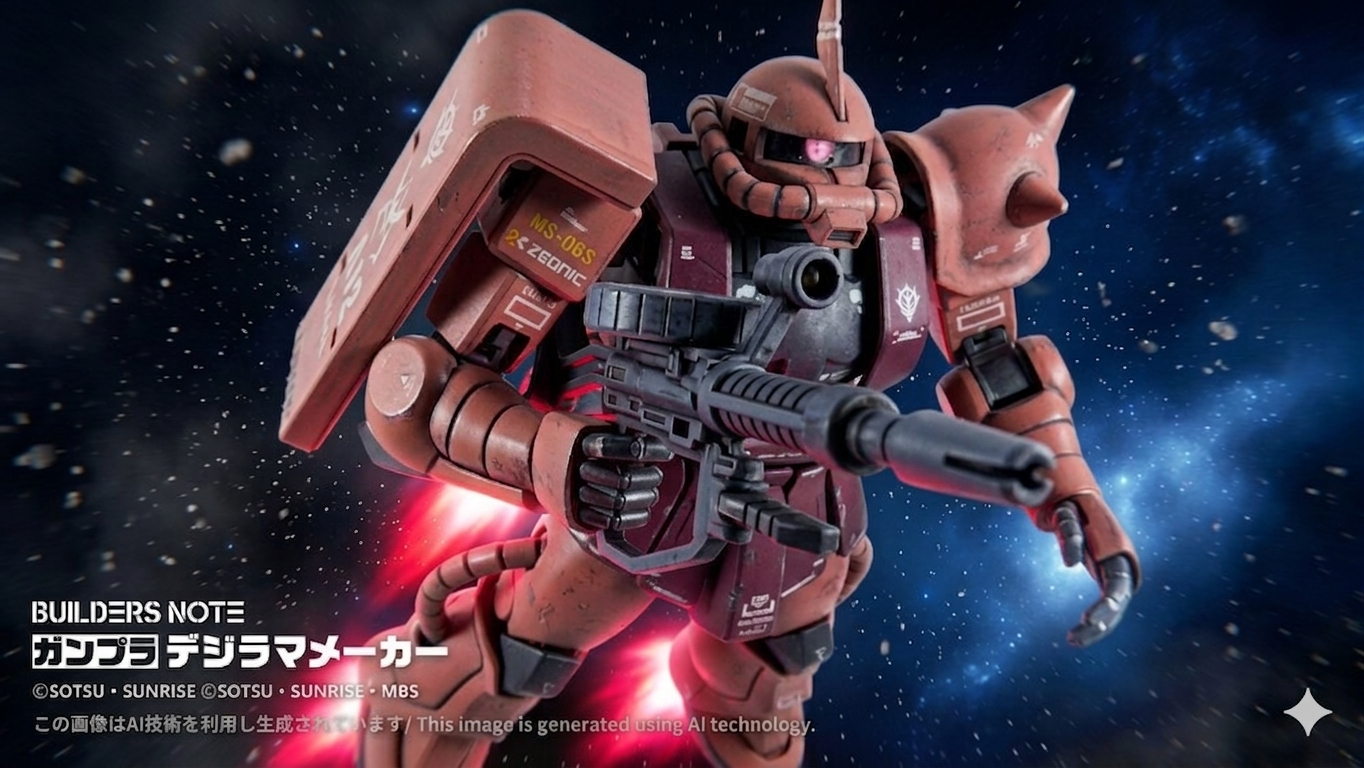 この頃のシャアは強キャラだったのでダメージ的なウェザリングはしませんでした(zaku-kao2)