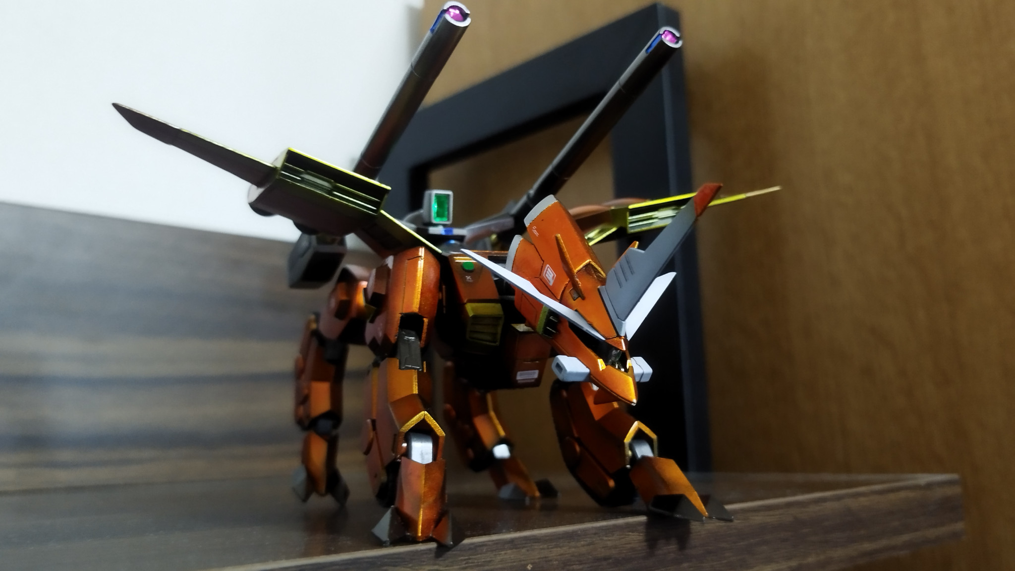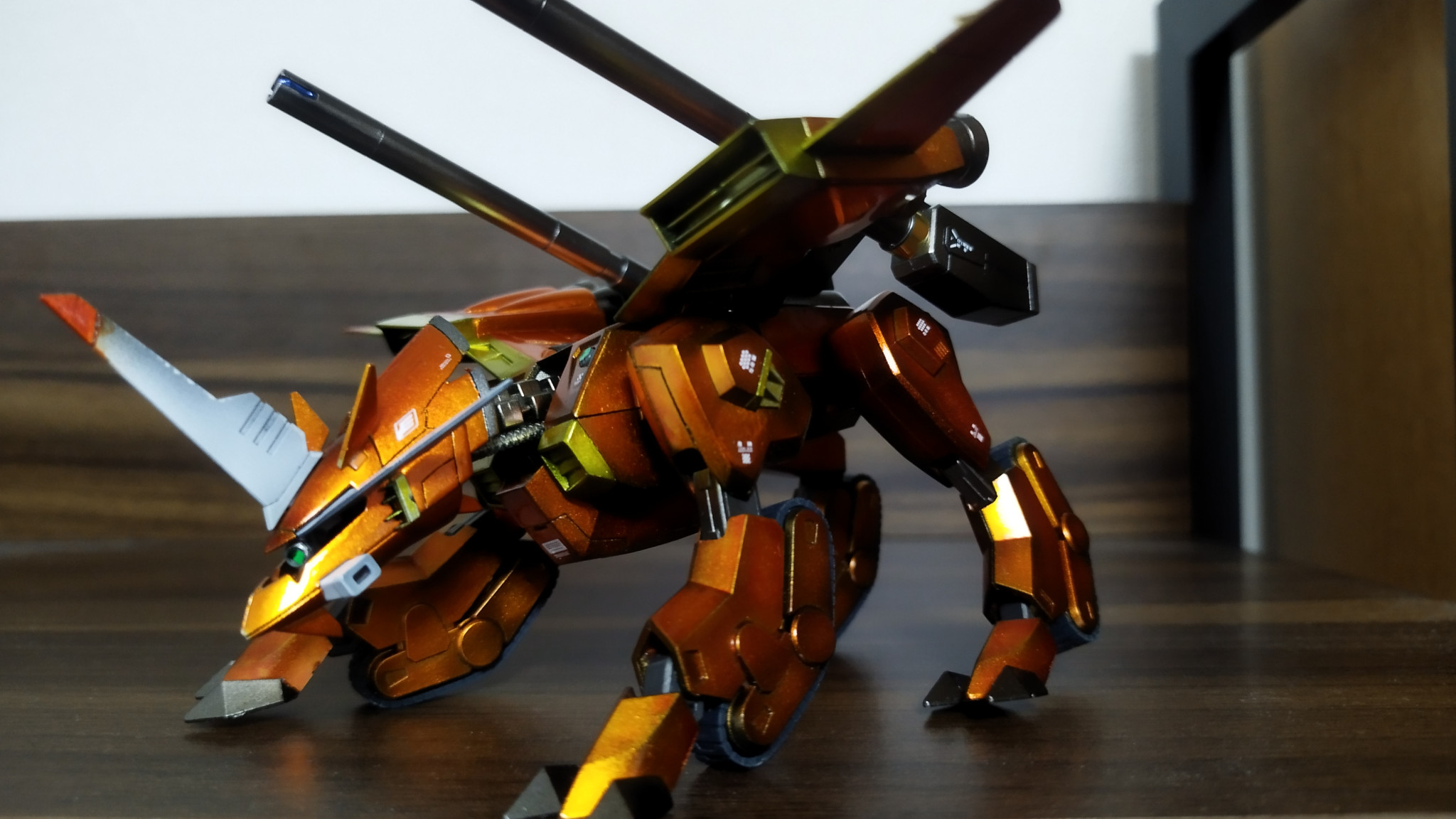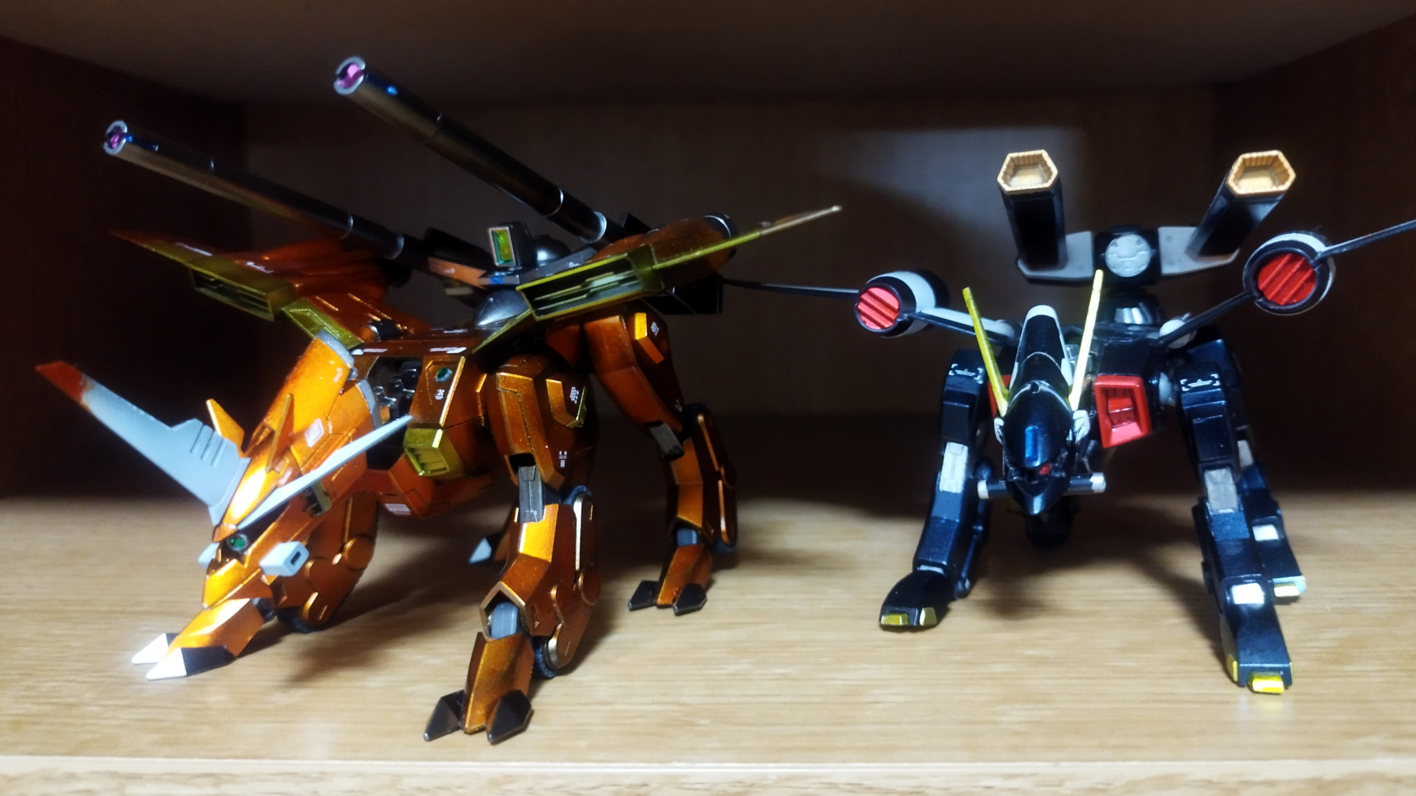 今回は、部屋に素組みで飾ってあったラゴウとバクゥのキャンデイ塗装とスジ彫りを少し加えました。ビームサーベルやミサイルポッドは管理が悪く、何処にいったのやら(◔‿◔;)