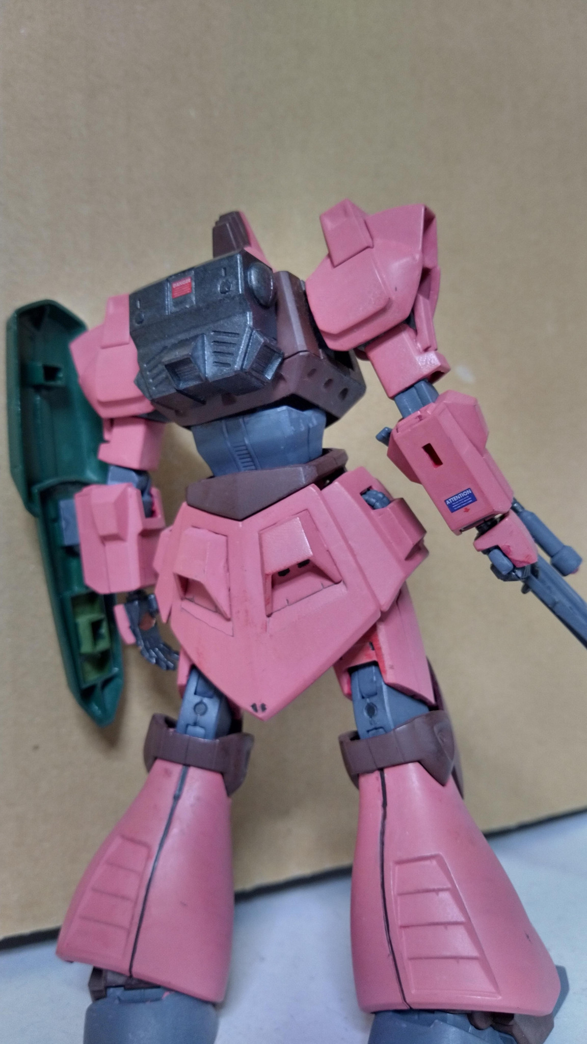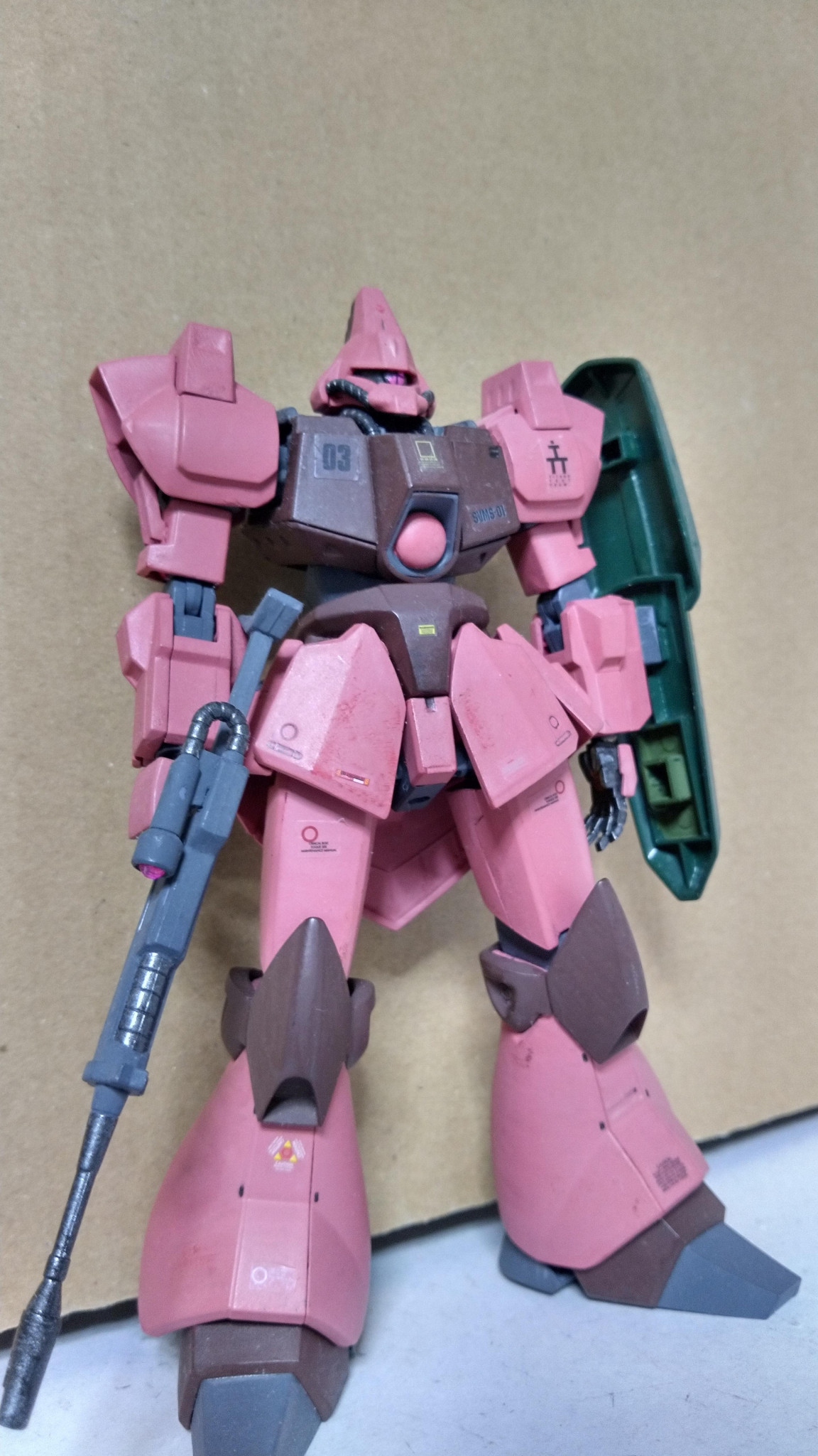 悩んだのは基本色。テレビ版や、新作劇場版を確認しましたが、微妙に違いがあります。この辺りは個人の見解が違うかもしれませんね。ライフルもゲルググの発展型?でしょうが、古臭さがあります。でもお気に入りの機体ですので、まぁ良いかと。(•‿•)
