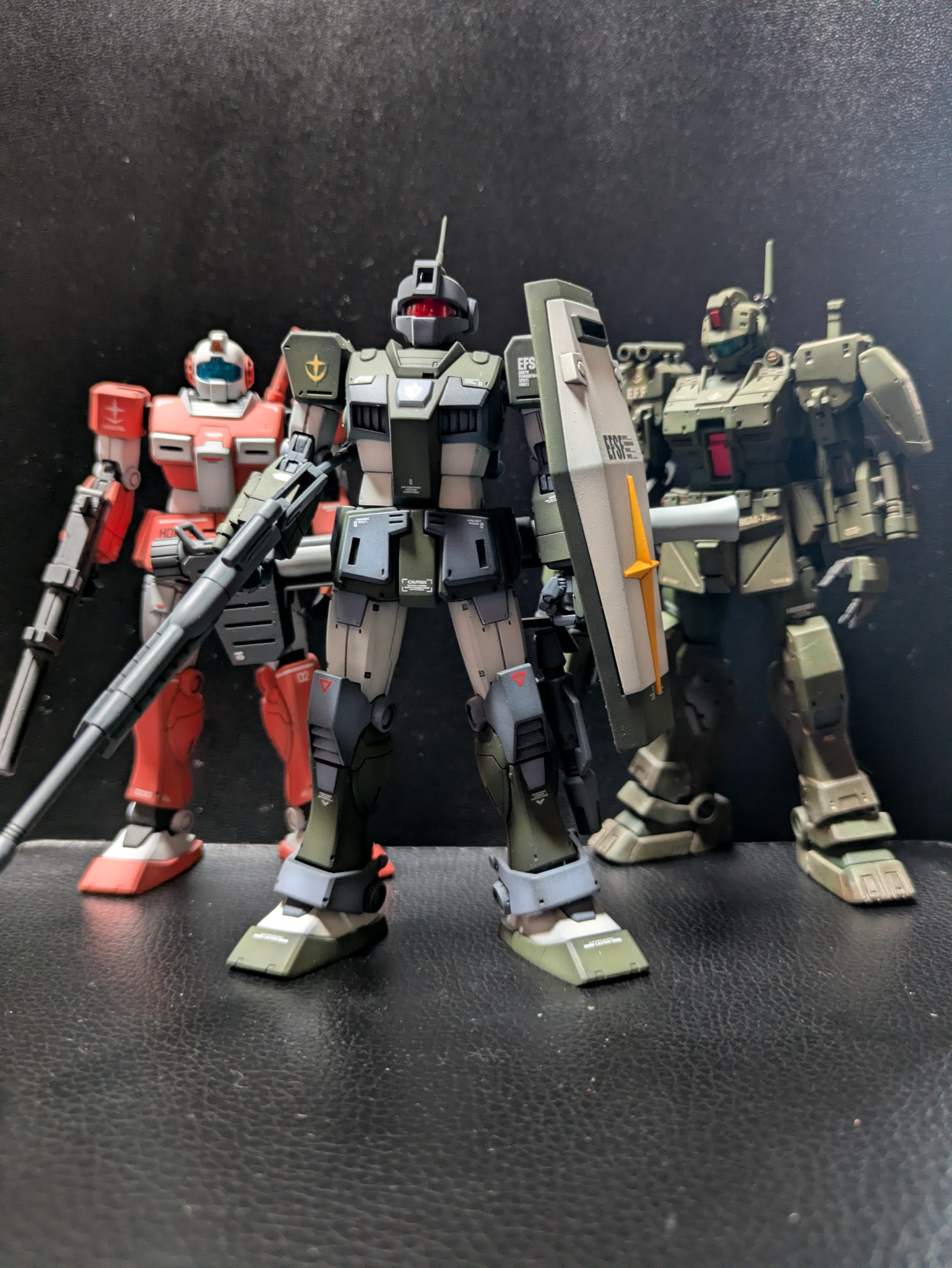 ジムキャノンはHGUCジムと旧キットのミキシングです。ゼータでジャブロー防衛していた赤キャノンですね🙂