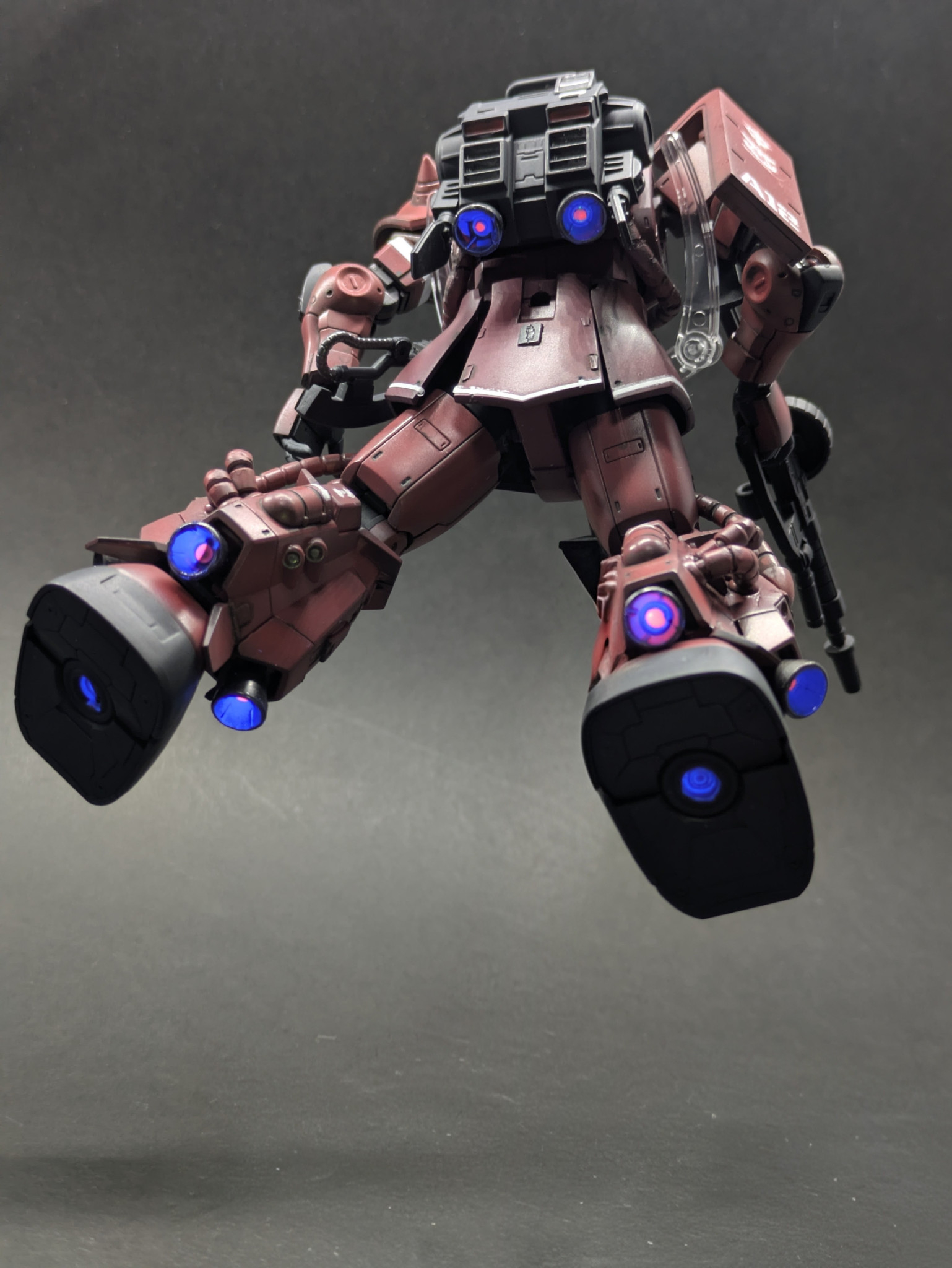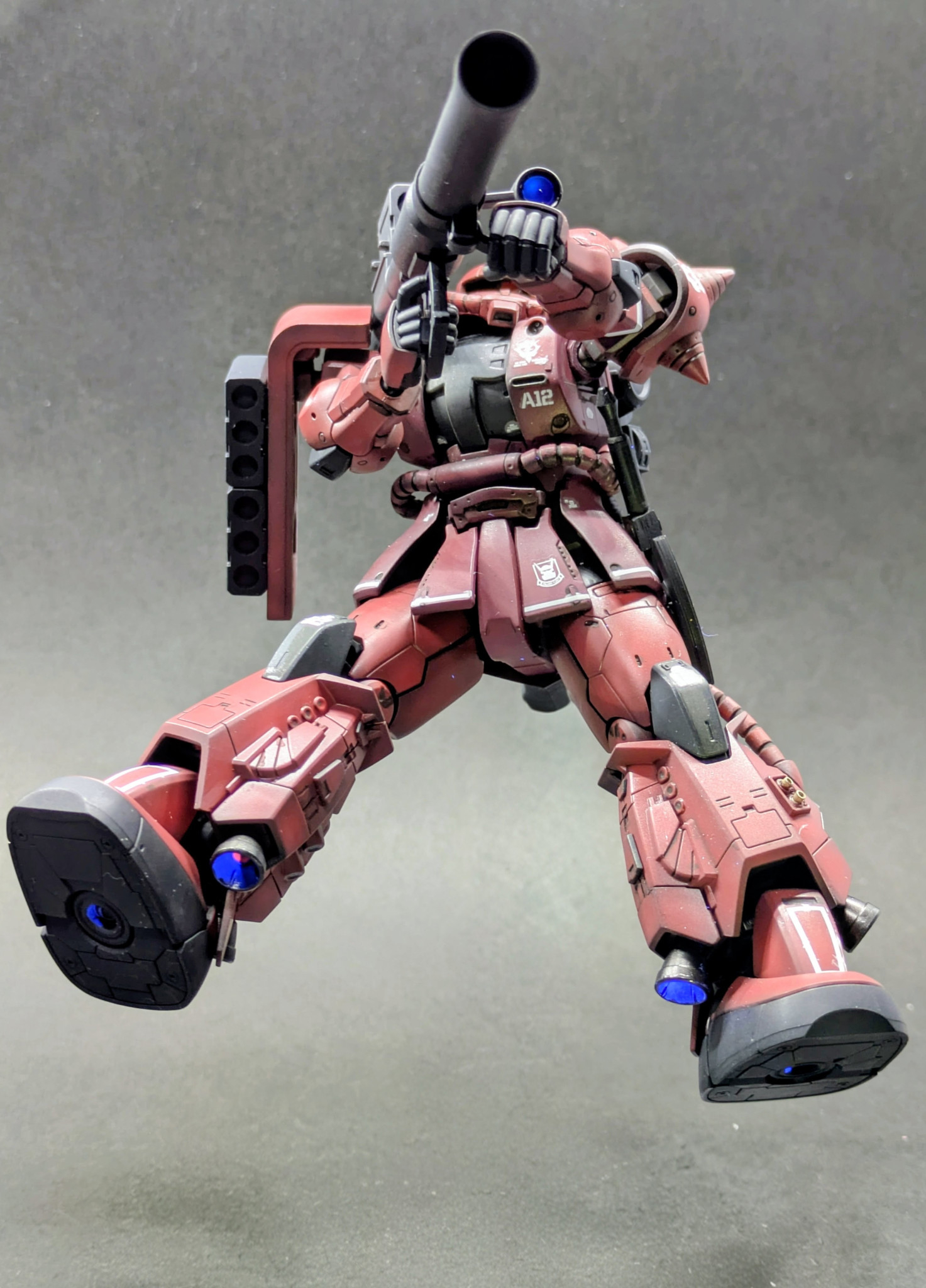 モノアイスリットや動力パイプの改修、スラスターの塗装とこだわりのある作品‼️力強さも伝わります😆👍