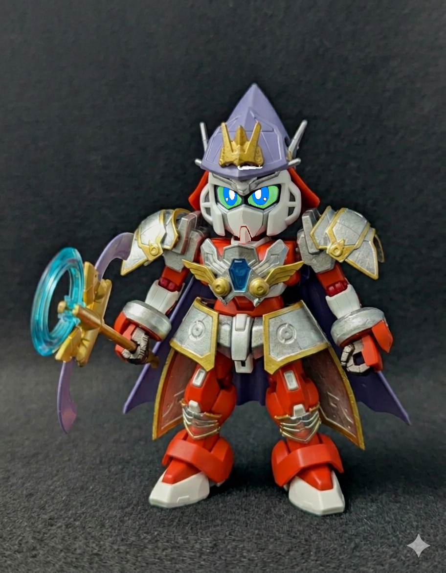 自作小説「SDガンダム異聞録 蒼星の騎士」に登場する主人公パーティメンバーの紅一点法術士アルケインをプラモデル化しました、これで4人のパーティメンバーが揃いましたね