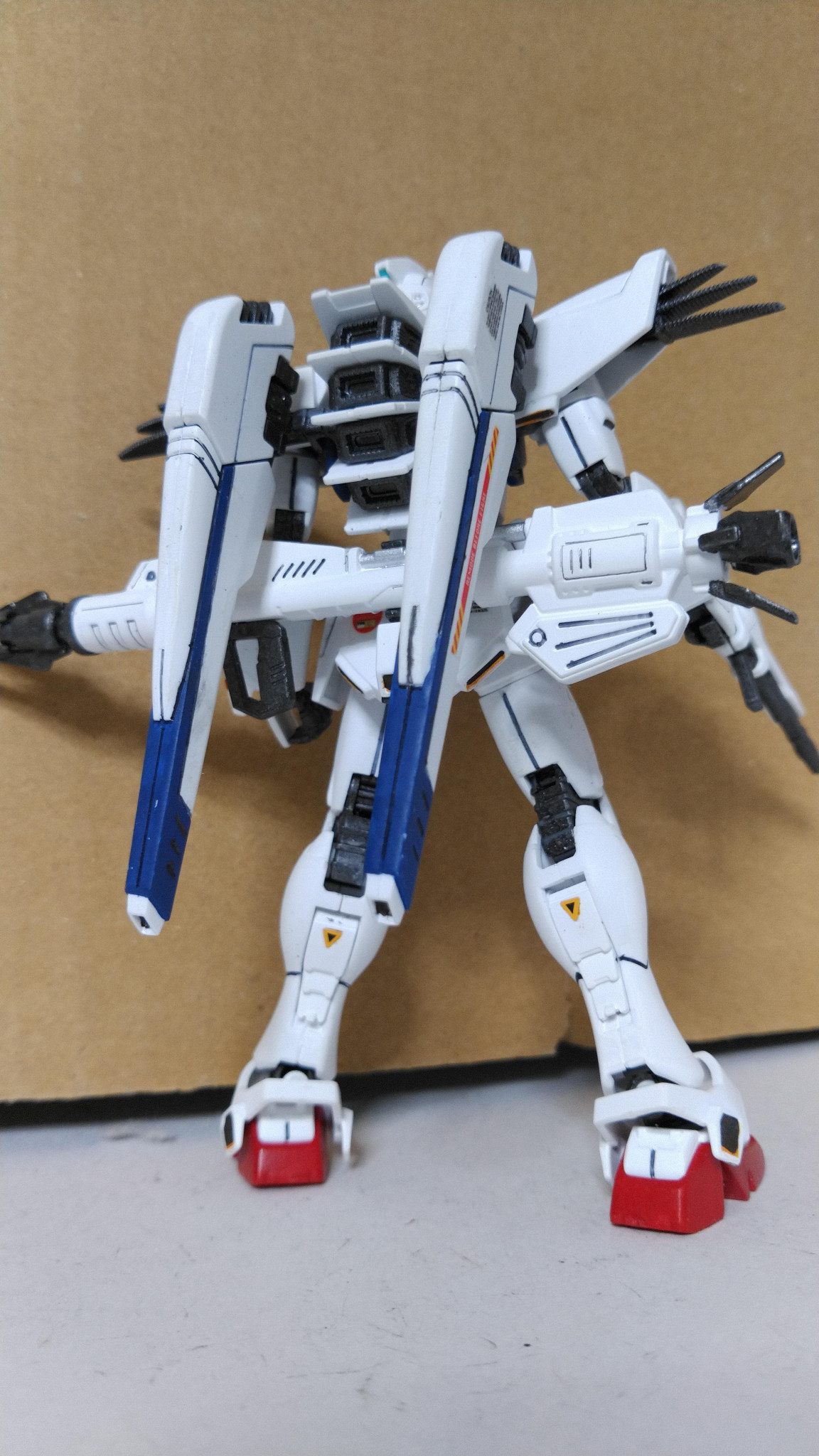 無改造、筆塗り塗装ですが、出来が良いので、十分魅力的。頭部がやや幅広なのが玉に傷ですが、このサイズなら健闘してるかな?背部ヴェスパーの展開も小さいキットなのに、ちゃんとポージングが出来ます。