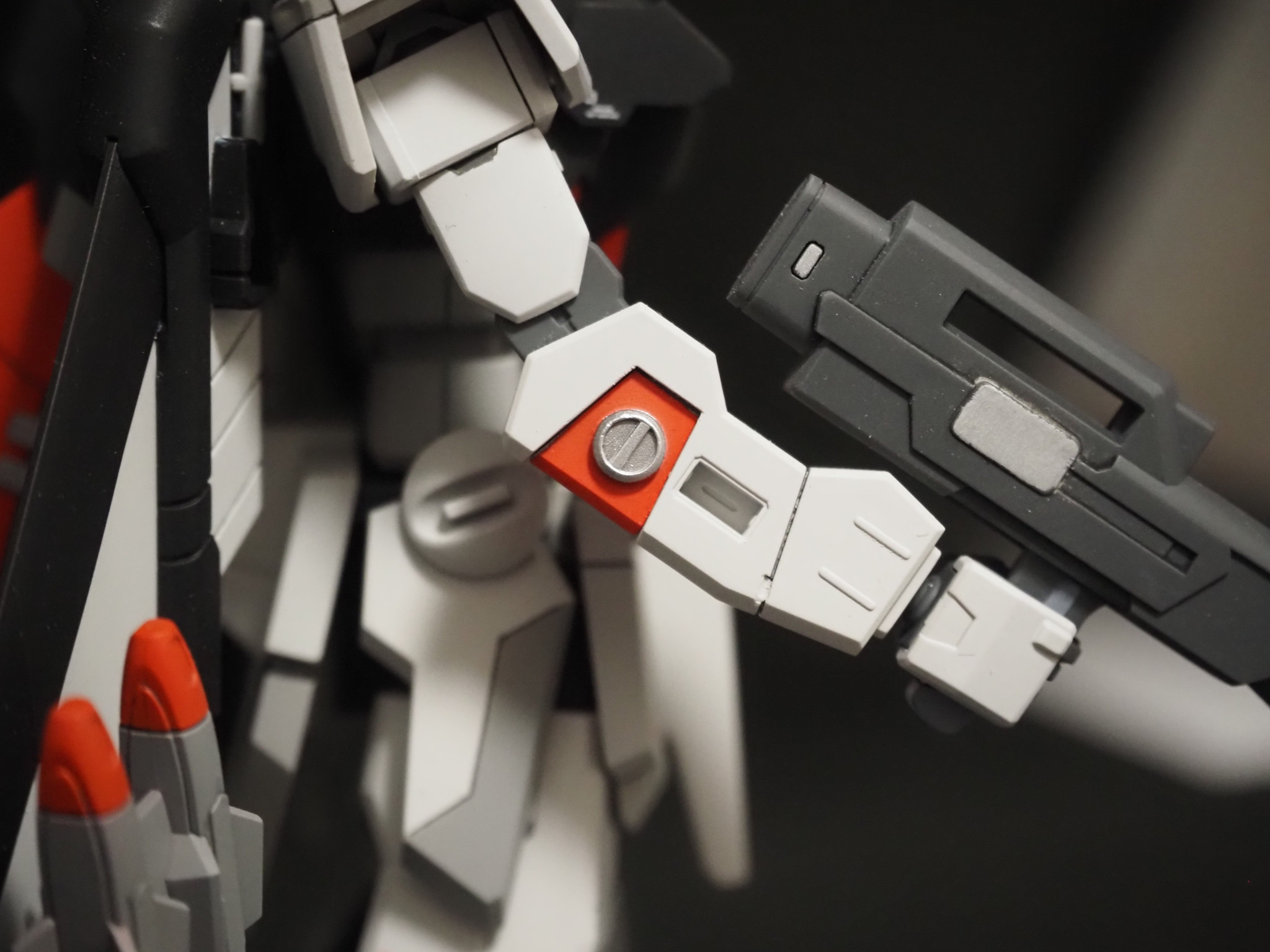 肘のだるい凸ディテールはヤスリで削り落とし、別パーツを接着しました。