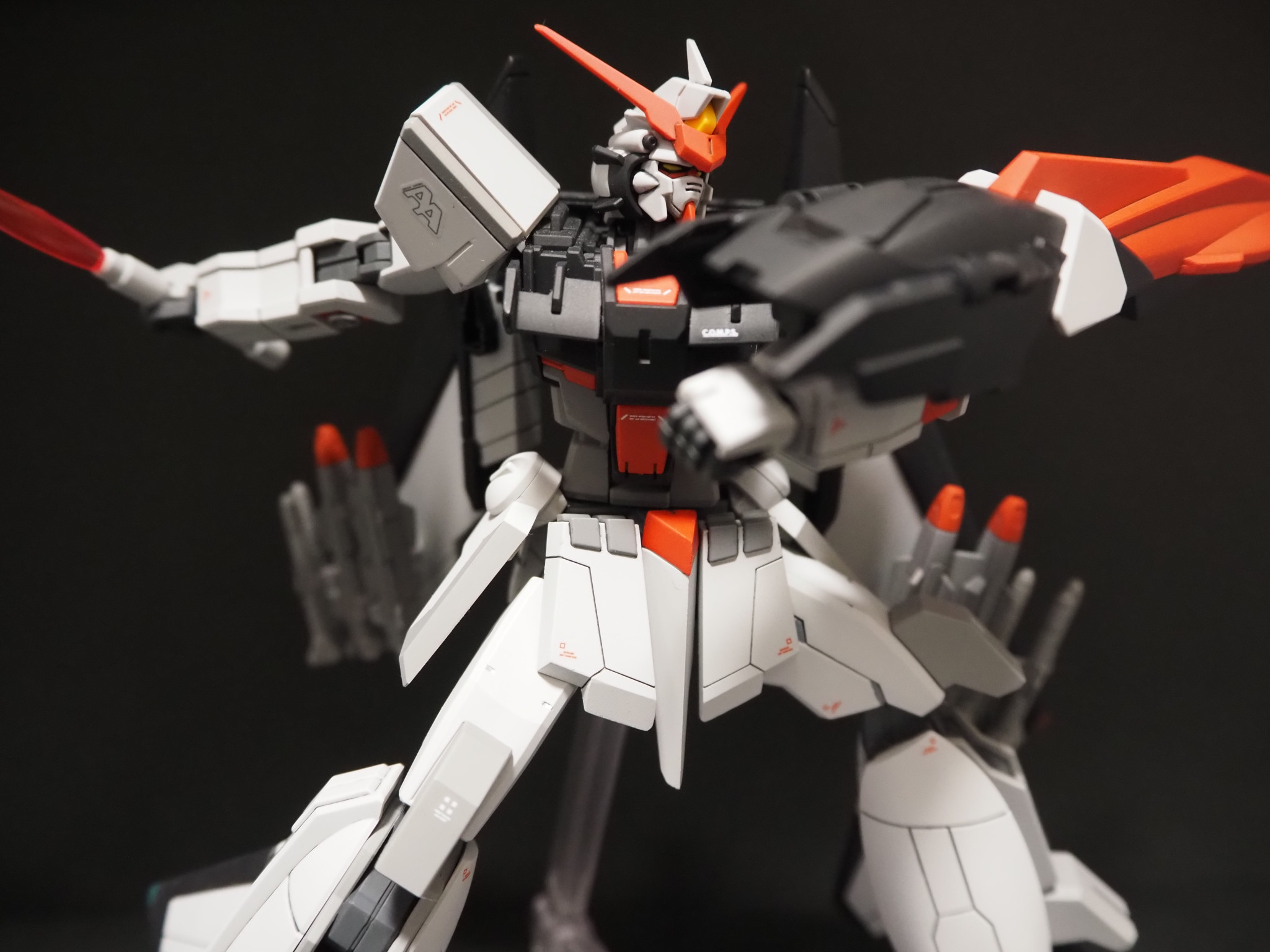 SEED系の機体は背負いものが派手なので、後ろ姿が見ごたえありますね。