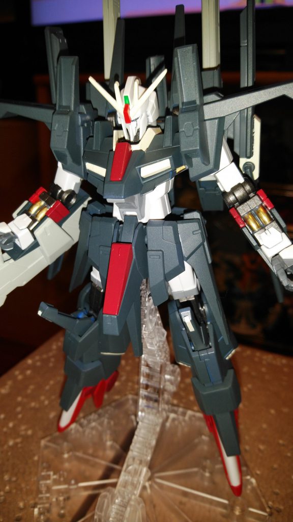 本当はコンテスト【可変機】で応募しようと制作しましたが、つや消しスプレーをしたらパーツが硬くなってしまい胸部が抜けなくなってしまったので残念ながら可変しなくなってしまいました(涙)