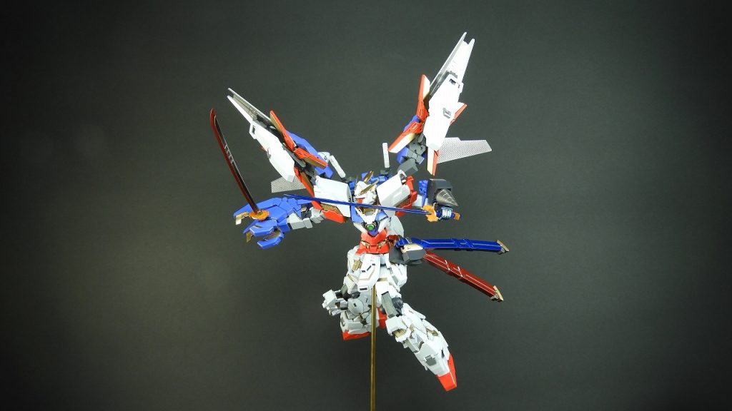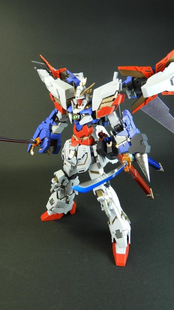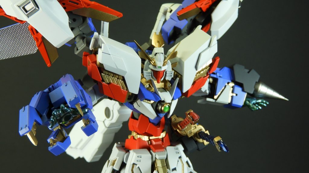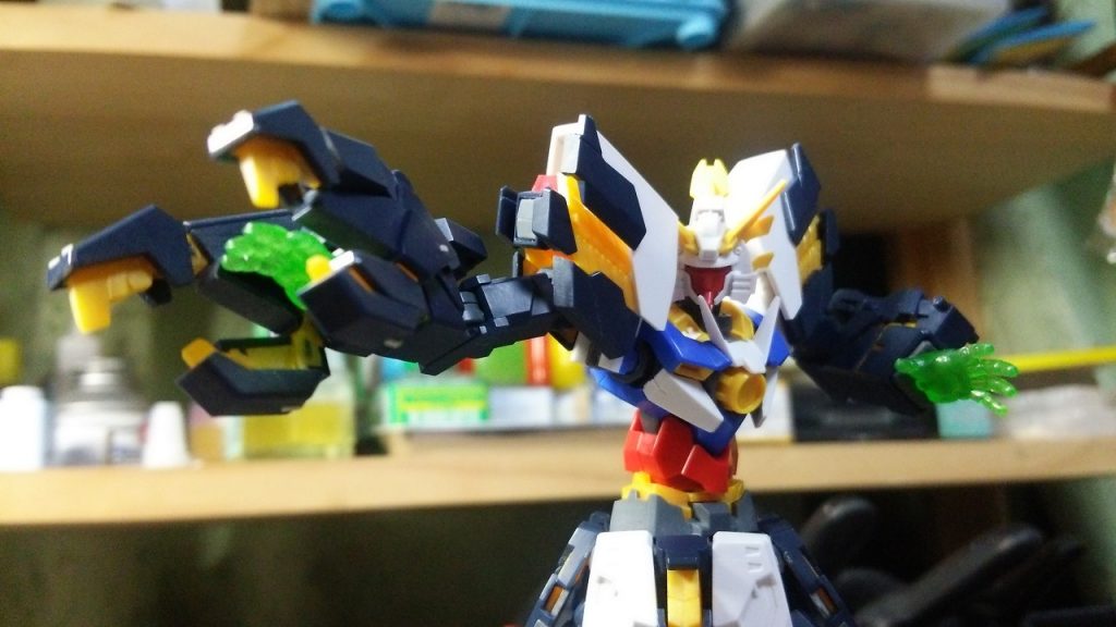 元のシャイニングの装甲スライドギミックが“肩だけ”ってのが物足りない印象だったので、全身スライドのあるユニコーンと混ぜてやれって思い付きです胴体がクアンタなのは中央に丸い物があるヤツが欲しかっただけです