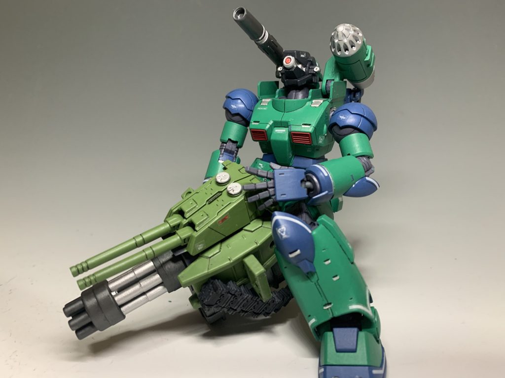 武器はHGBCジャイアントガトリングと、M.S.Gモデリングサポートグッズの連装砲、ベルトリンクを組み合わせています。