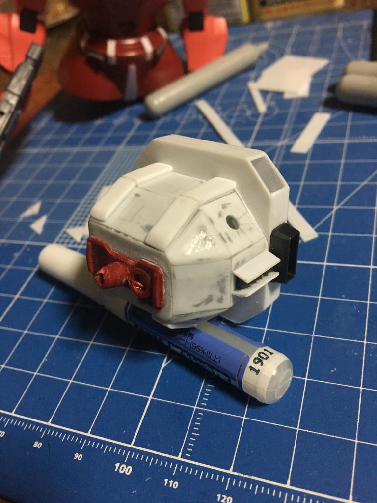 肩部はHGUCゲルググの肩に切り出したプラ板を張り合わせ、バーニアはサイコザクの余剰パーツの余りを使用しました😄