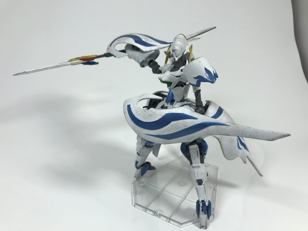 聖王国の標準カラーな白青ツートンですが、我ながら機体のラインにドンピシャにハマってくれてこれはいいぞぉ!と一人でニヤニヤしておりました笑