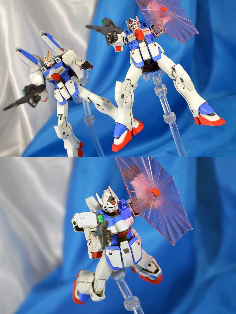 劇中でも何度か見られた、ビームシールドの部分展開を再現してみました。