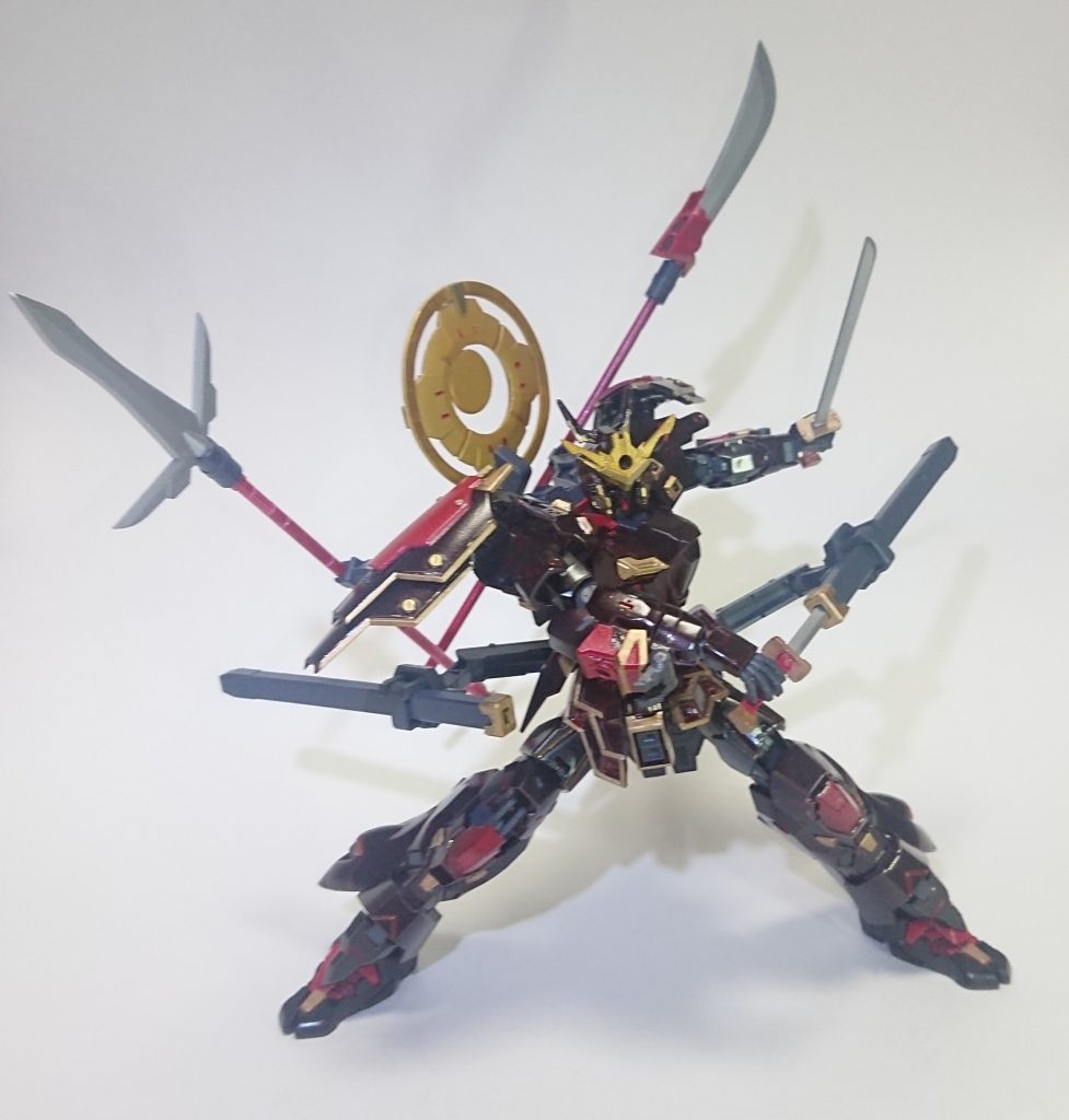 塗装直前に顔の赤いパーツを無くしたので、エクシアとダブルオーのパーツで誤魔化したりしました