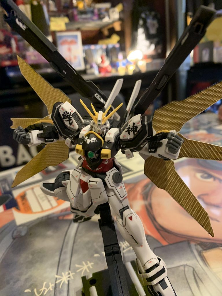 HGゴッドガンダムにダブルエックスのパーツをミキシングして、武者○伝の爆王頑駄無をリアル形態にしたイメージで作りました。