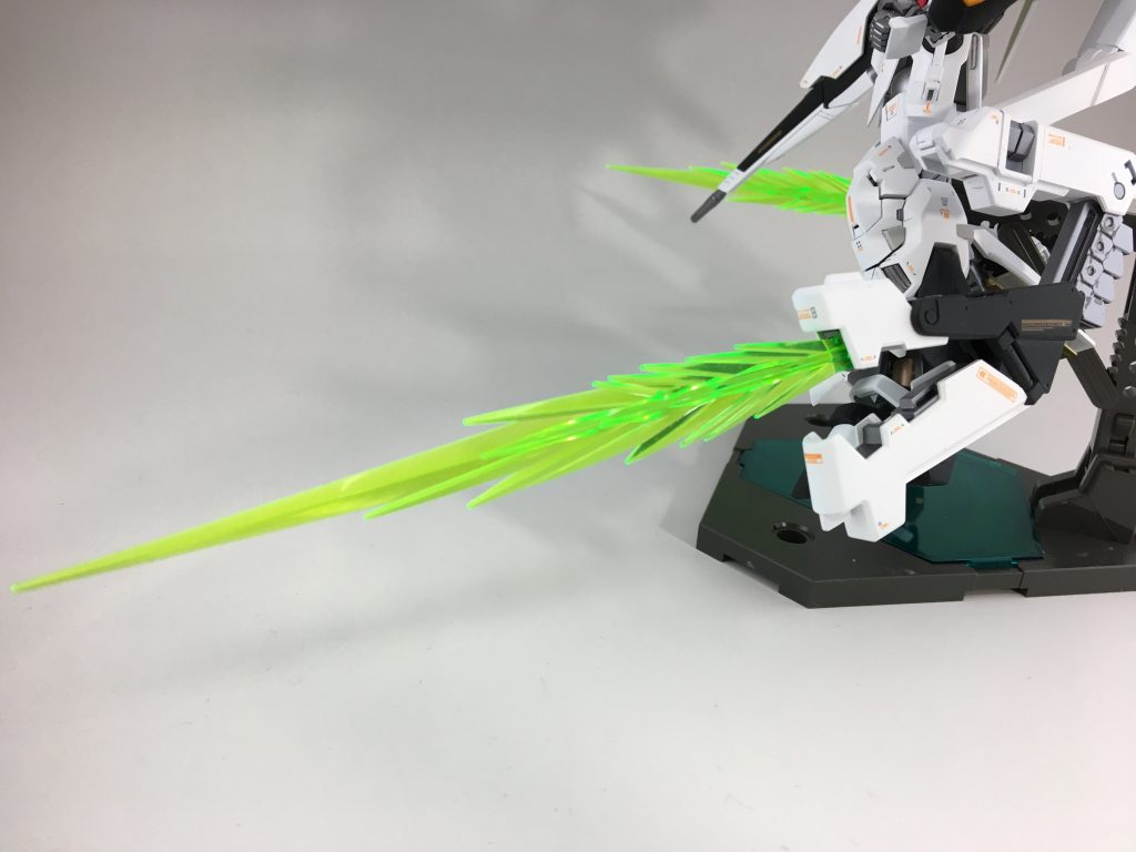 ムーンガンダムの脚を使用する事にしたものの、側面への取り付けは困難と即座に判断し、後方の脹脛(ふくらはぎ)に移植。