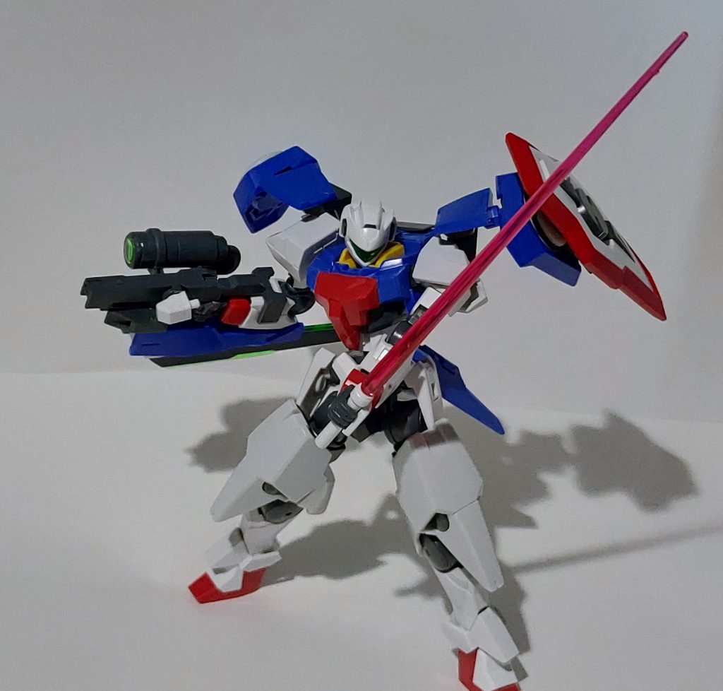 前回の量産型ダブルオーに新規パーツを組み込んで改良型にしました
