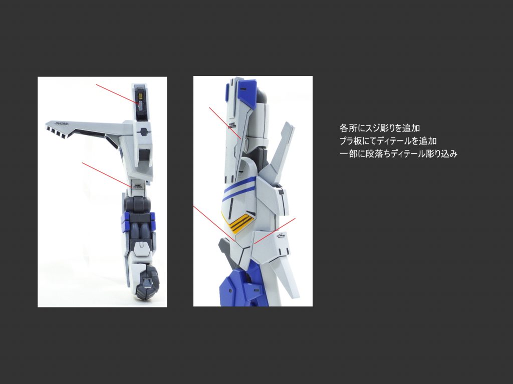 各所にスジボリにて情報量を追加して塗分け 太ももをパテにて幅…
