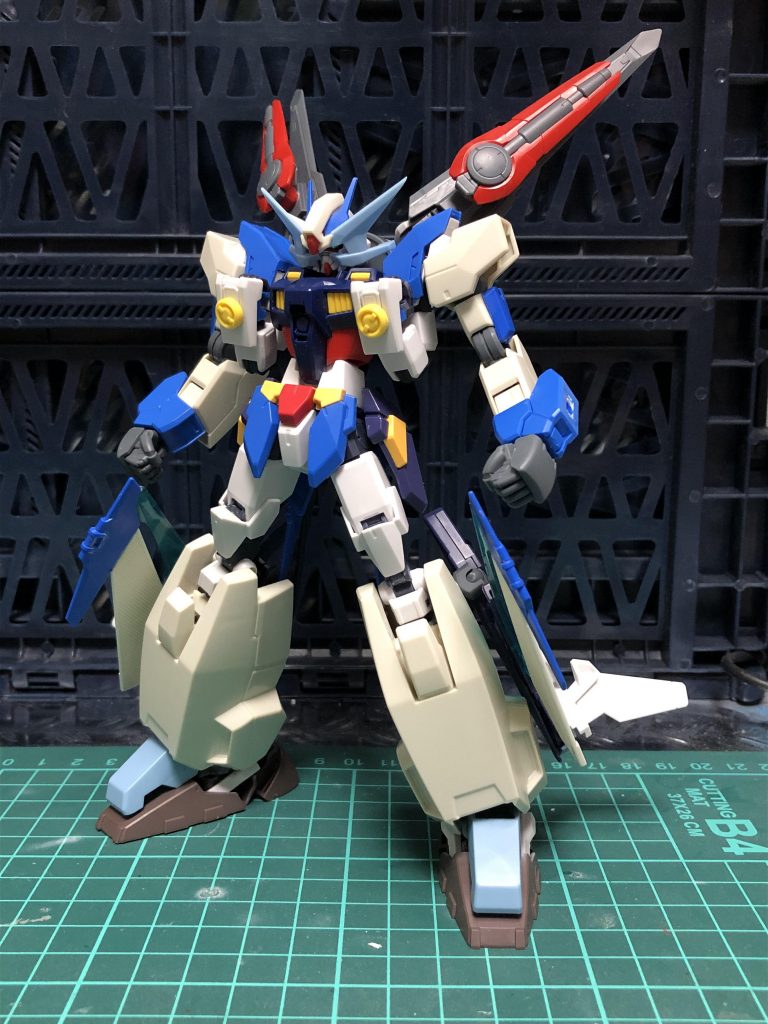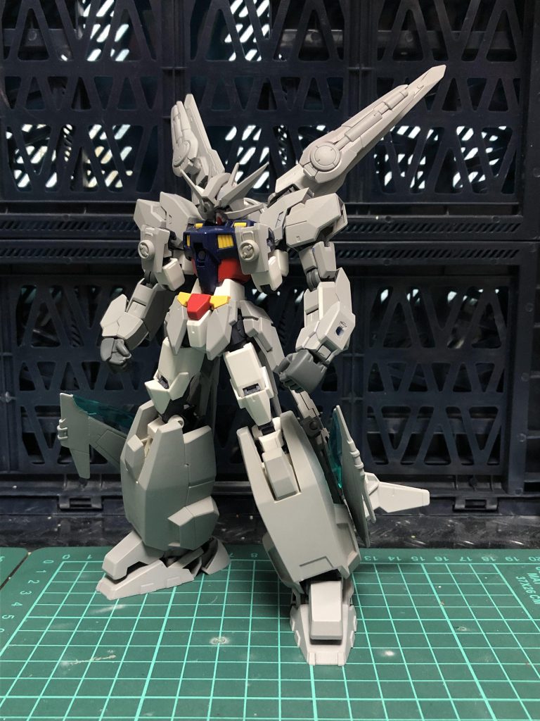 大型化したボディに印象で負けないようにする為、頭部アーマーははセラヴィーガンダムシェヘラザードのパーツを使い大型化。勇者ロボやガンダムダブルエックスのような強化ロボ感を強めている。