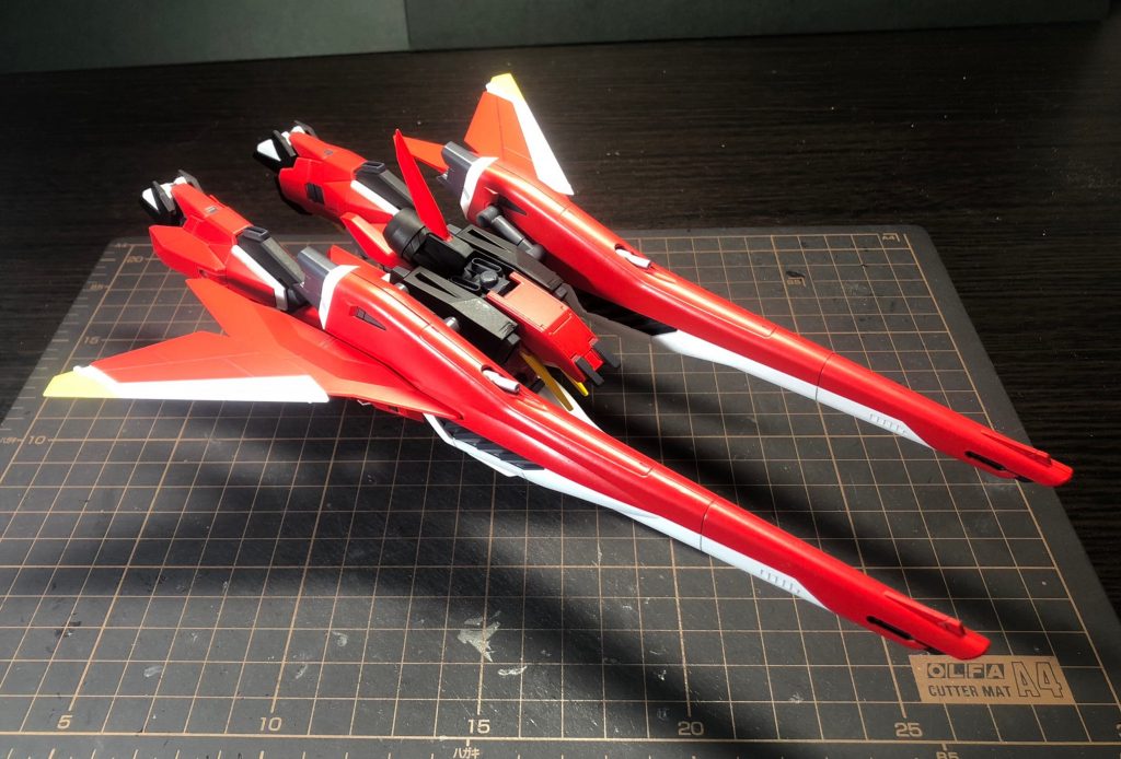 これにより飛行形態時にビーム砲の砲身と折りたたんだ脚部が一直線に並ぶ形状となります。(変形後のA-Zガンダムのような感じです)