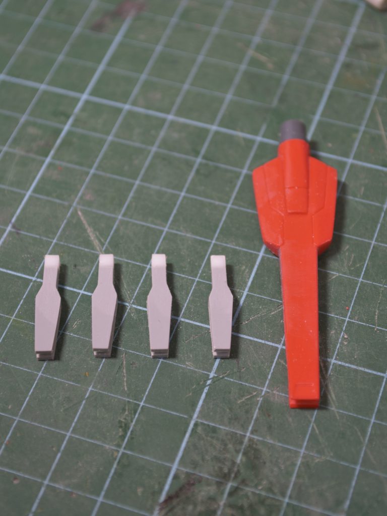 フィンファングはタミヤの軟質透明プラ棒でディスプレイ。小型ファングはキットでは未再現なのでスクラッチ、サーベル刃も透明プラ板で製作しました。