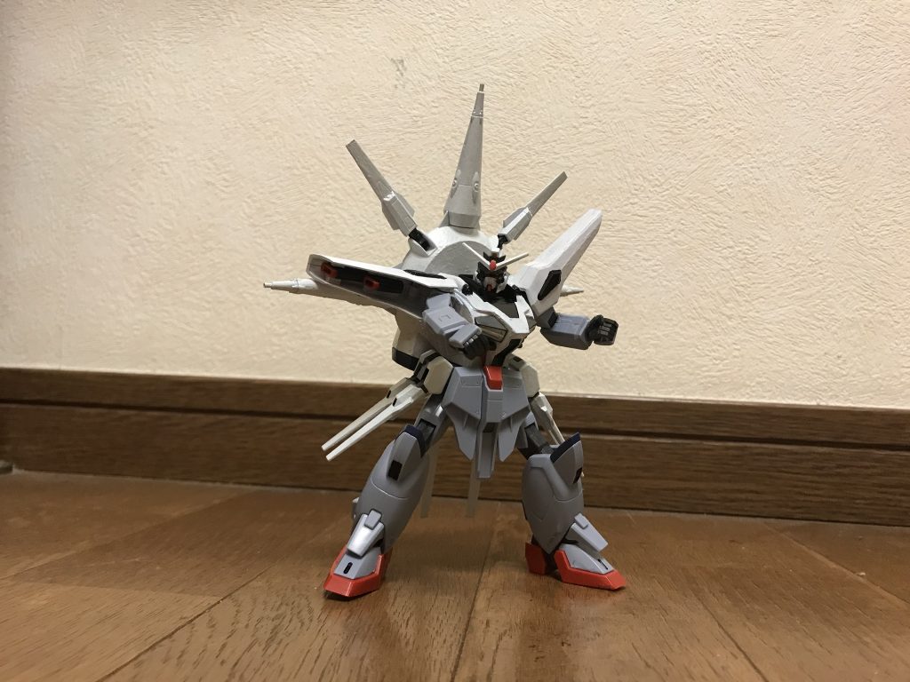 このガンプラは、HGプロヴィデンスガンダムをベースにし、胸部、両肩部、腰部、そして全身に装備されていた11基のビーム砲端末を、白と黒を基調としたカラーリングに塗装しました。