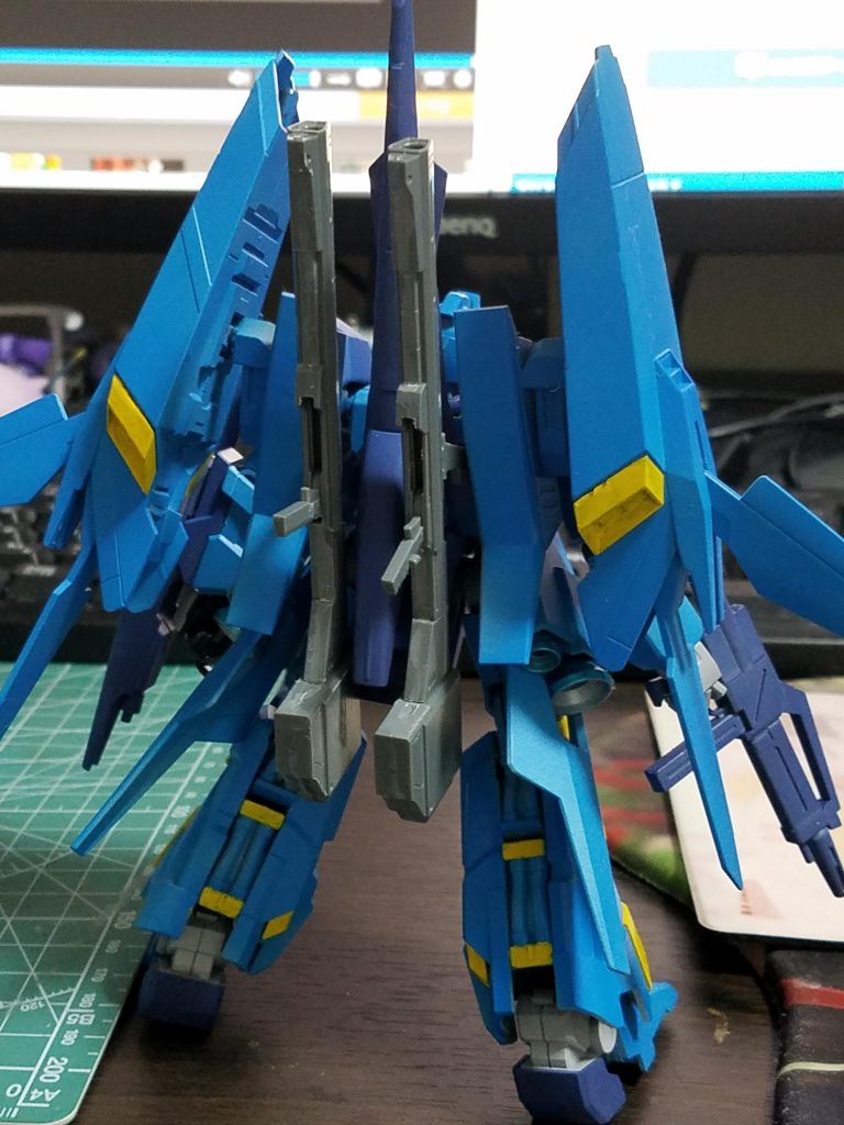 背中のバックパックはZⅡとのミキシングになっておりまして、セメントでパックはくっ付けて作成し、ジェガン自体にはピンバイスで穴を空けた上で3㎜プラ棒をくっ付けて差し込んでいます!