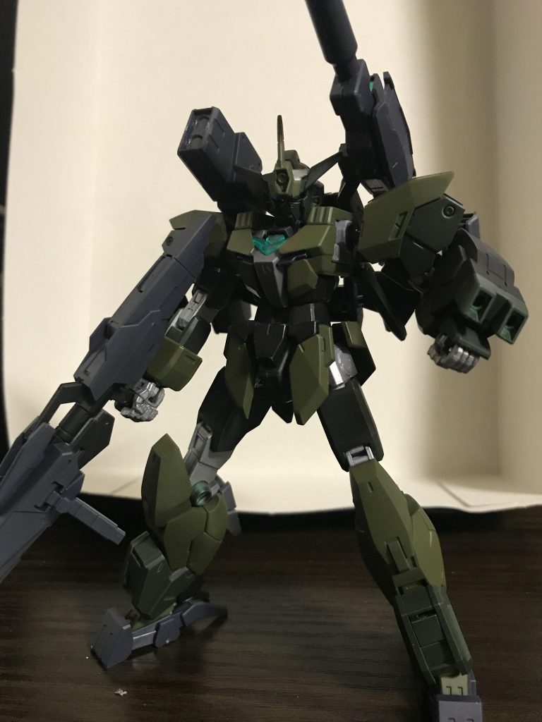 2色の緑をベースカラーに間接部分はシルバーで、迷彩というか夜戦仕様のカラーリングにしてみました。武装以外はフル塗装で艶消し拭いてます。
