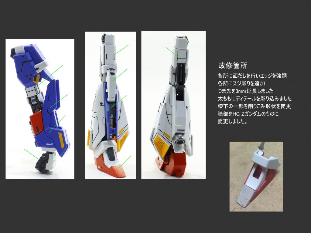 各所にスジボリにて情報量を追加して塗分け 太ももをパテにて幅…