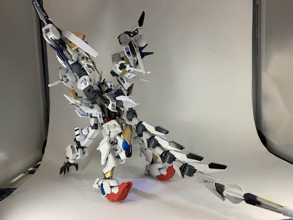 機体のカラーリングはそれに合わせて白と金でまとめている。
