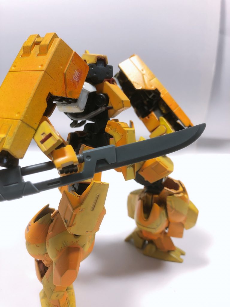 通常のグレイズと比べると脚部を中心的に重装甲に改修されており反動の大きい武装や足場が不安定な場所でも苦戦せずに戦えるようになっている。