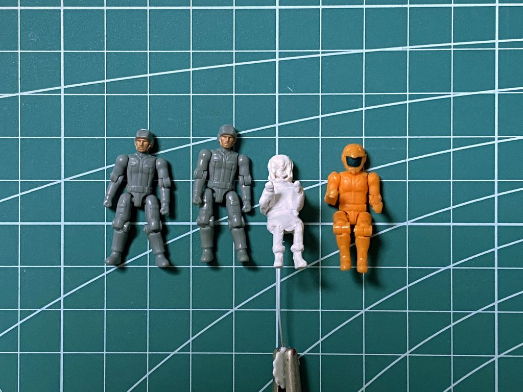 コアガンダムにヒロトを乗せたい!でもこのサイズの可動フィギュアを改造するのは難しかったので、エポパテで着座の固定ポーズフィギュアを作って、シタデルカラーで筆塗りしました。