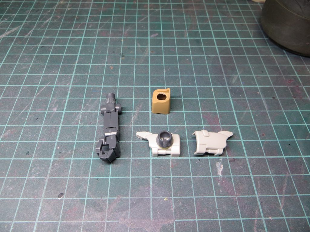 二の腕が細く短いように感じたので、ドムトローペンの二の腕を付けてます(黄土色の部品)。