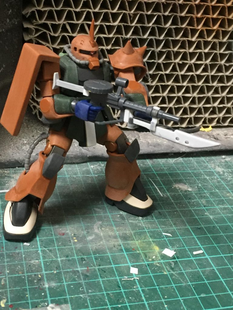 ザクのカラーリングも素敵ですが、個人的には銃剣付きザクマシンガンを改造して再現された、そのセンスと技術に脱帽です!