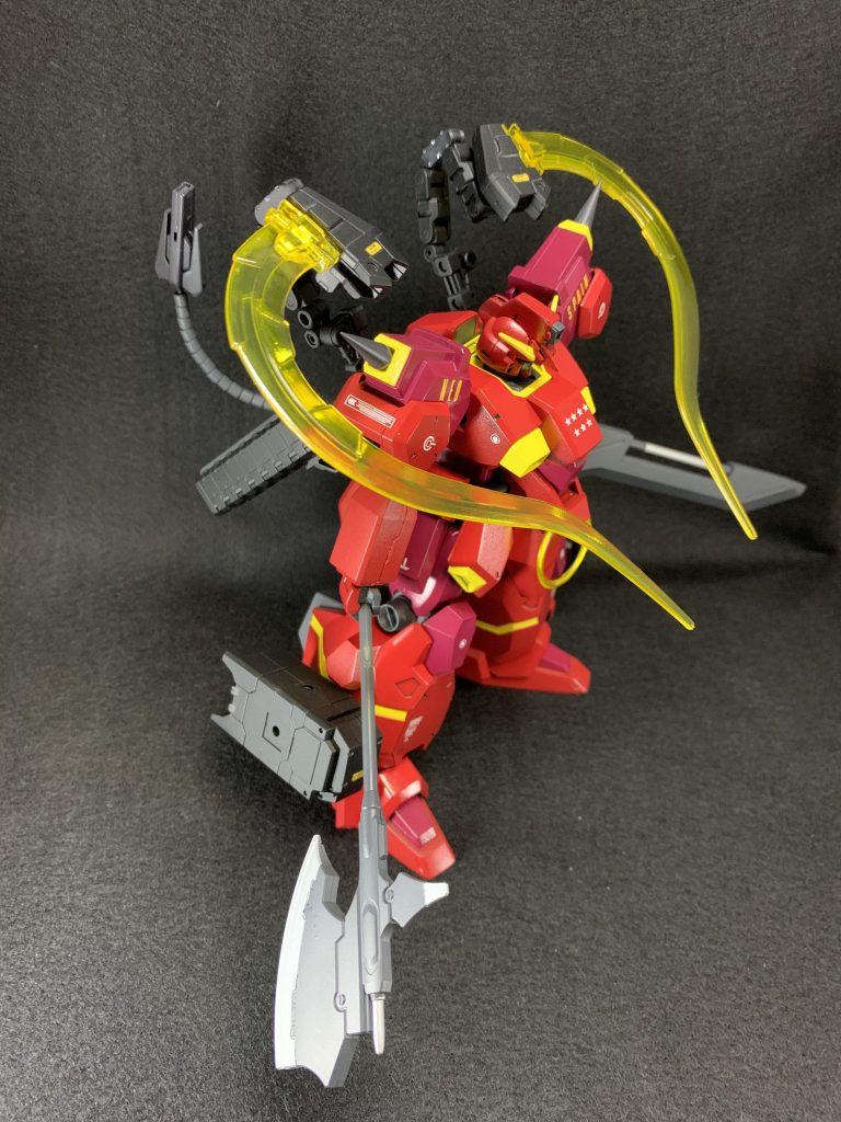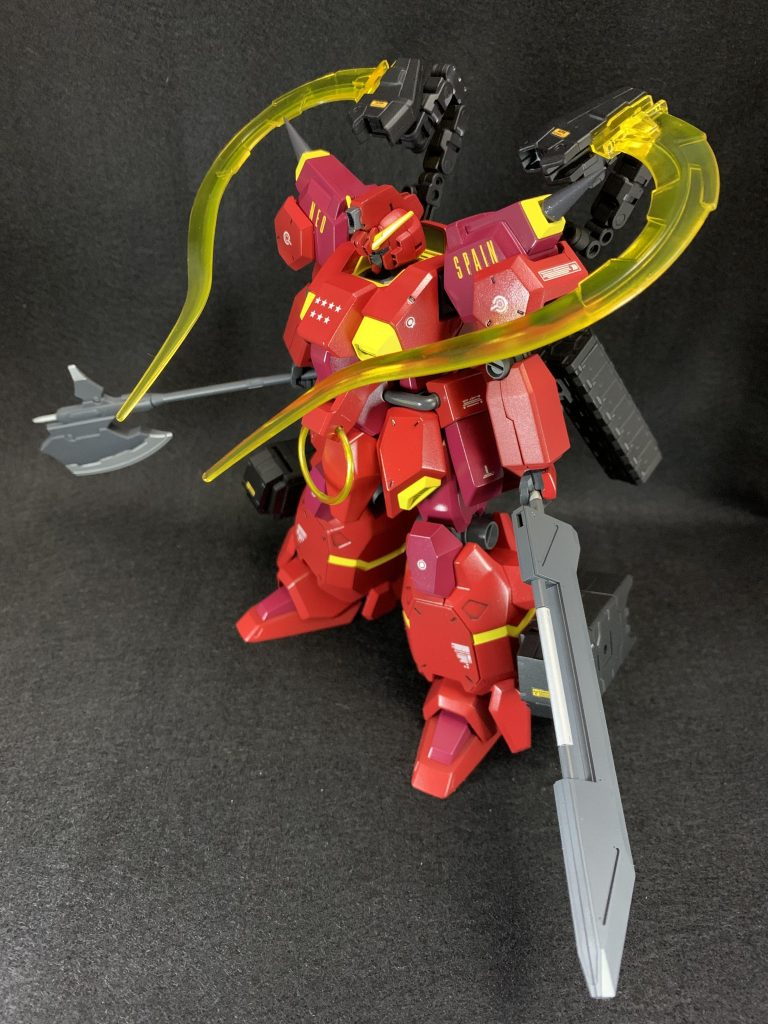 グスタフカールに少し改造したヘイズル改の頭を乗っけたのをベースとして、“マタドールガンダム”らしさを出すため、角・尻尾・鼻輪を付けました。