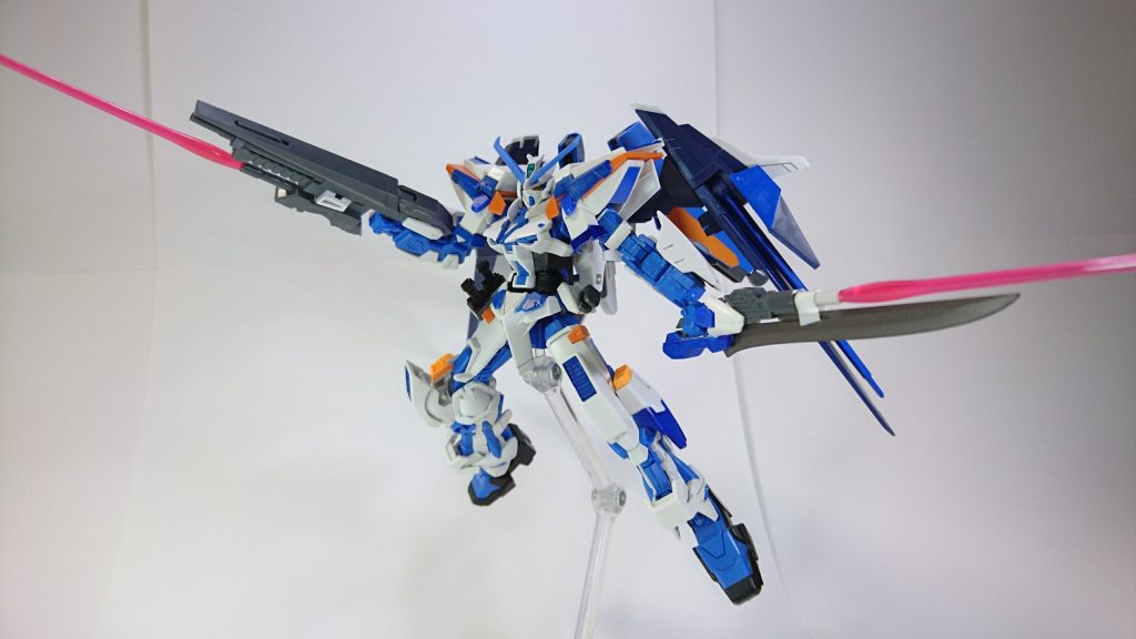 以前のブルーフレームが大気圏内用のイメージだったので今回は無重力下イメージでしたが、翼を付けてしまった結果内外両用な感じになってしまいました。