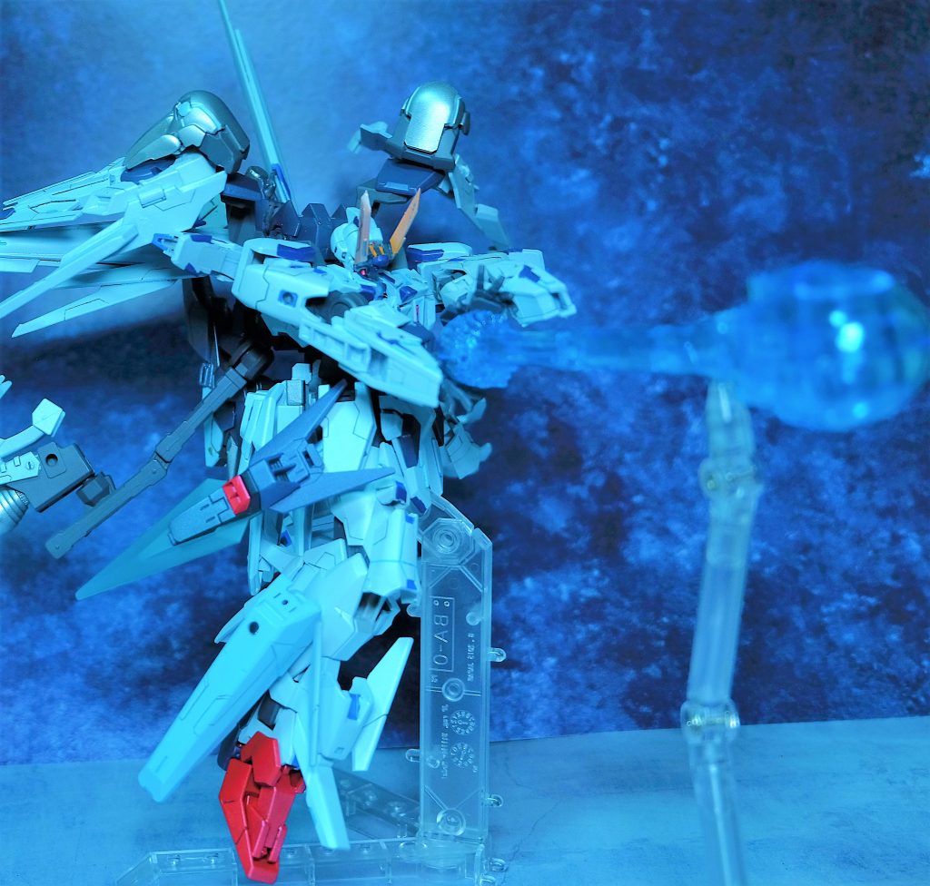 背部に装備されるGNドライブとIフィールド発生装置、掌のIフィールド
