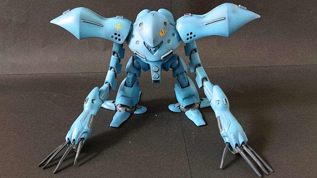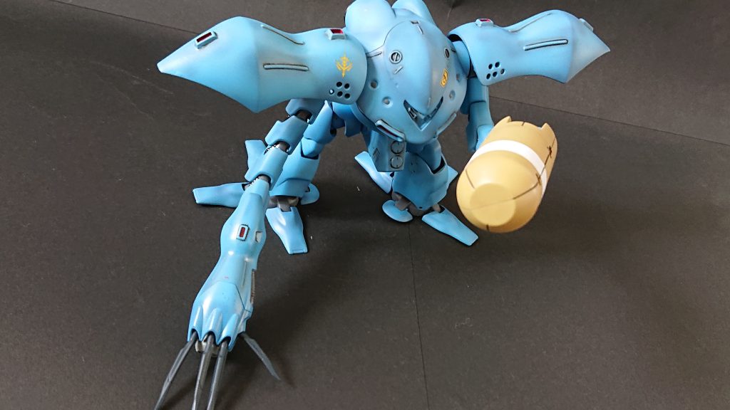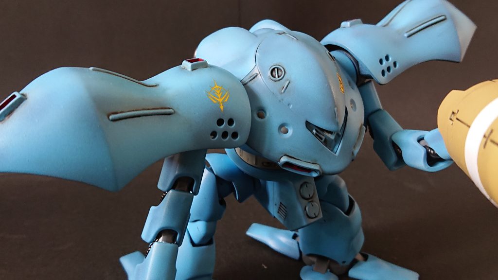 日焼けで退色したような、バックパックとフェアリングがいい感じですね。ハイゴックだと潮被って宇宙/陸戦機よりも余計に日焼けしそうですし。