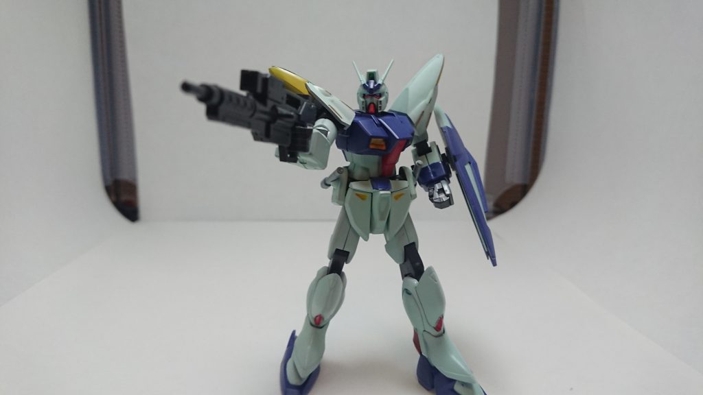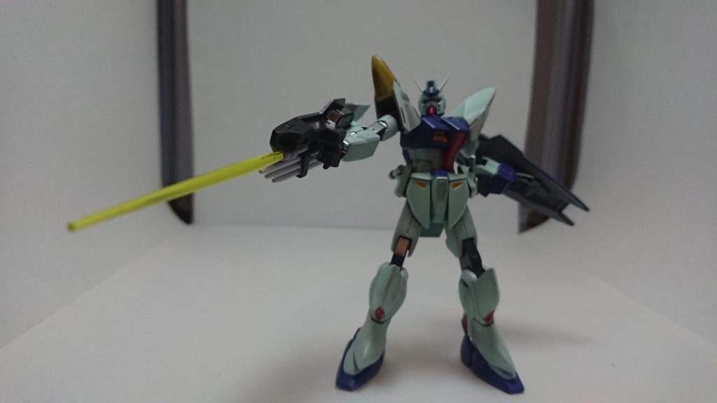 GW最後に作成しました、使用キットはHGブリッツガンダムとHGスローターダガーで頭部をバイザーからガンダム顔に変更しています。設定は条約違反のミラージュコロイドをオミットしブリッツを量産しようとした試作機みたいな感じです。