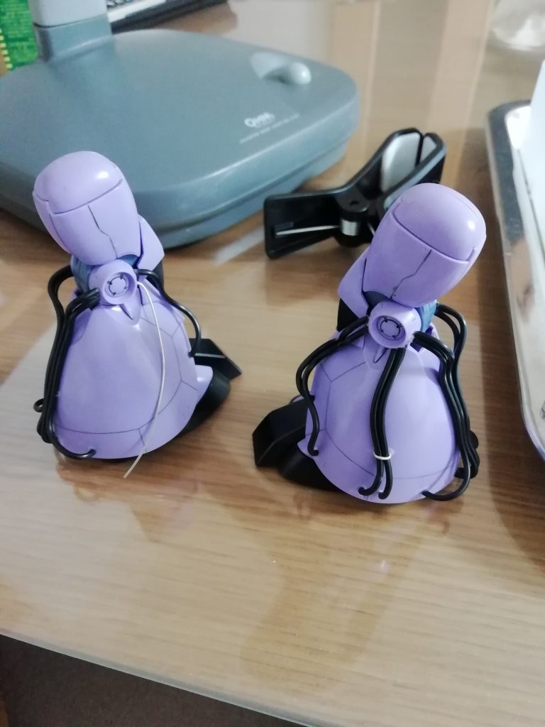 ・モノアイはガンダムマーカーの蛍光ピンクで塗装し、クリアパーツをメラミンスポンジで磨き少し曇らせました。