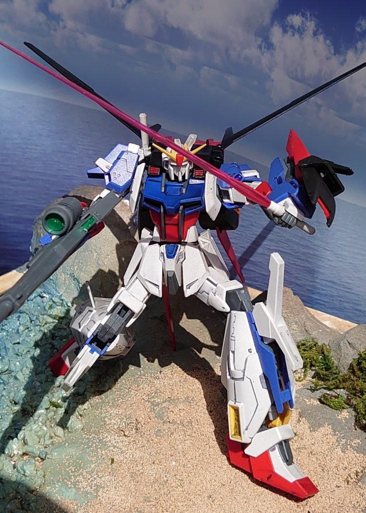オリジナルシリーズ2nd「ガイア小隊」No.1。UC153頃、迫り来るザンスカール帝国の脅威に警鐘をならすべく、AE社内に存在する人道的秘密結社「メテオ」が行動を起こす。人々の命や人権を守るべくメテオ:オペレーションとして、サンドロック小隊が地球に降り立つ。サンドロック小隊を危機から救うべく、大気圏を突き破り相手陣営の司令が乗る母艦を強襲破壊しようと企てる機体があった。「Destinies:アクション」として活動するアンドリュー・バルトフェルド隊長率いるガイア小隊に所属するMS「ストライクZ」だ。グリプス戦役時代の伝説的なMS、Ζガンダムを再設計した機体であり、ピーキーで高機動力を有し、回避能力はすさまじい。なお、ウェイブライダーへの可変機構はなく、人型としての性能向上が目指された設計思想となっている。