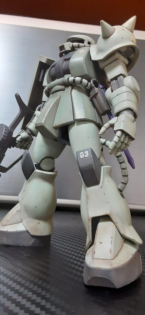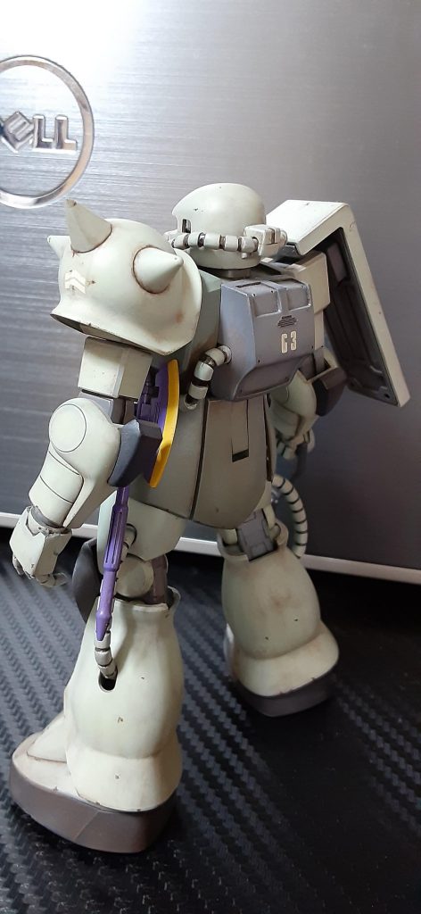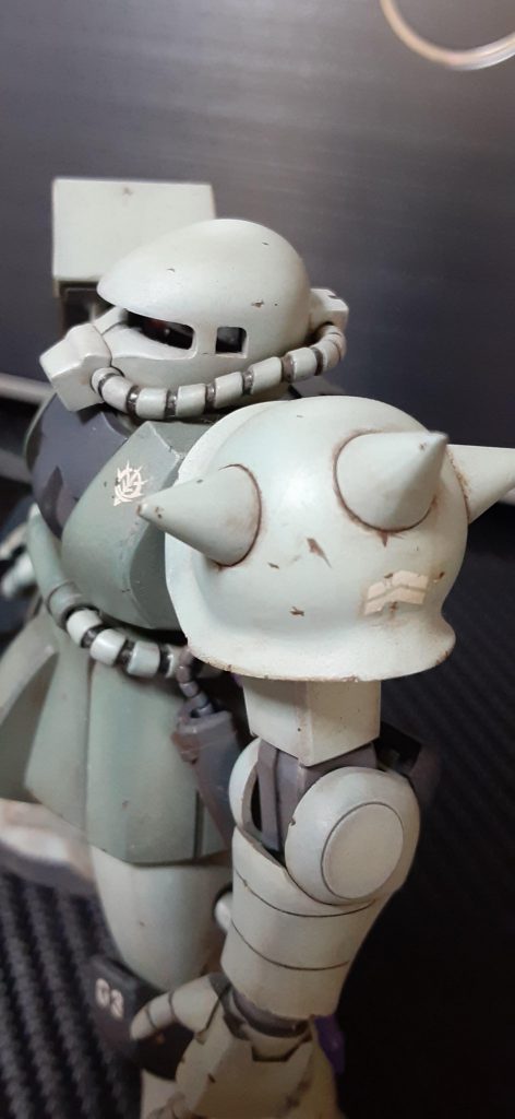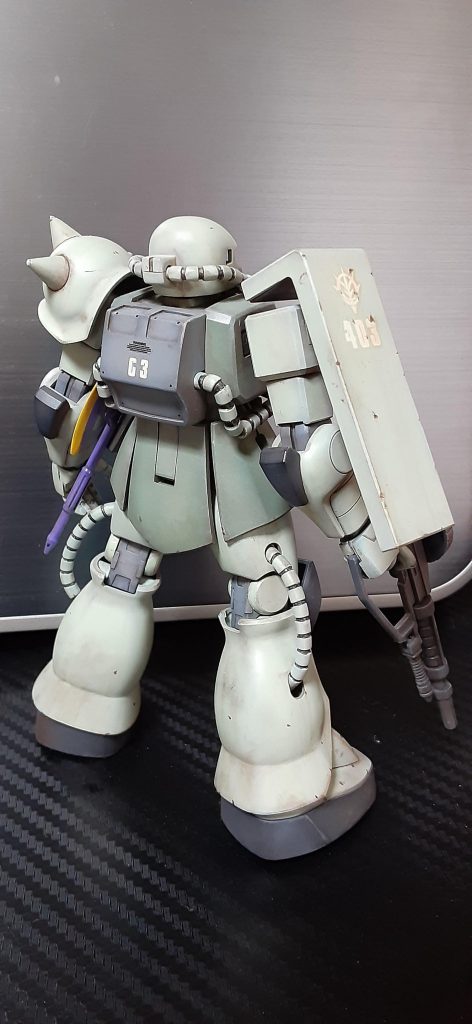 基本のザクのカラーをベースにホワイト多め、他にグレーやら茶色やら混ぜた記憶があります。