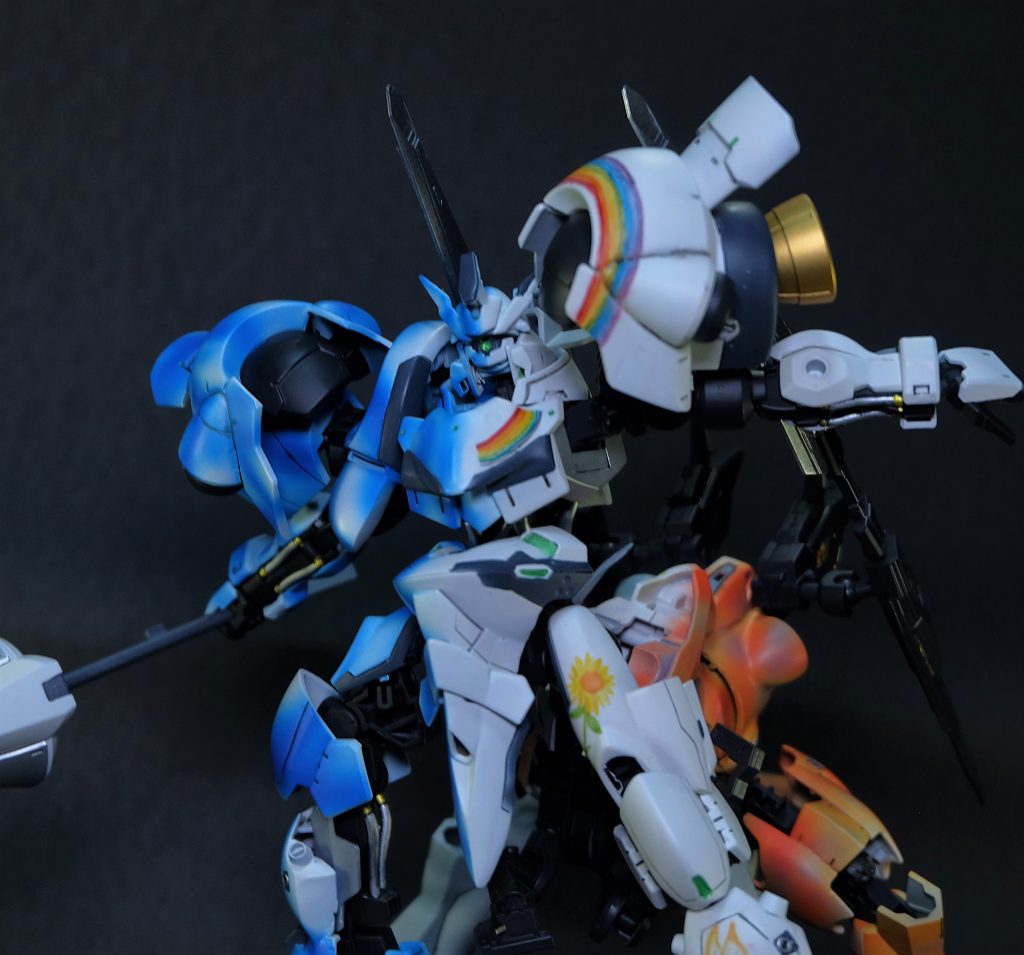 基本的には、ヘルムヴィーゲ、グレイズをベースにガーベラテトラとヴェイガン系のジャンクパーツをミキシングして制作しました。
