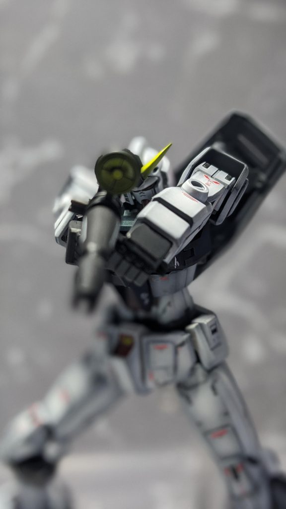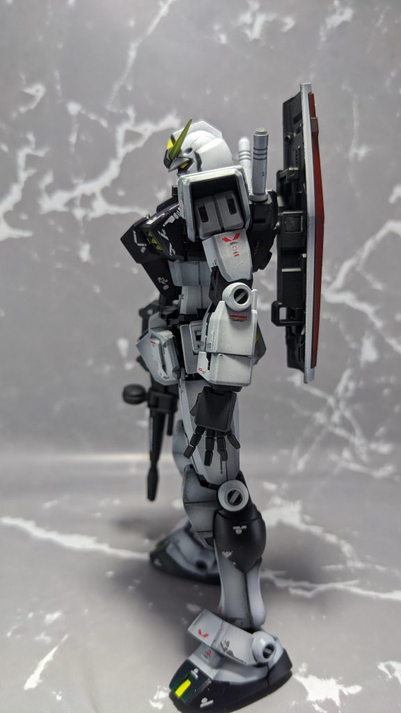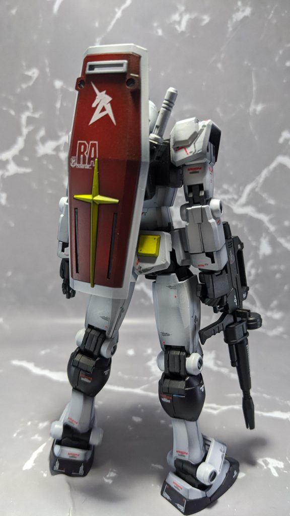あまりにもニューガンダム感が高いので、背中に背負わせたシールドを見ていたら、ファンネル風味なカラーにしてもよかったかも?なんて…。