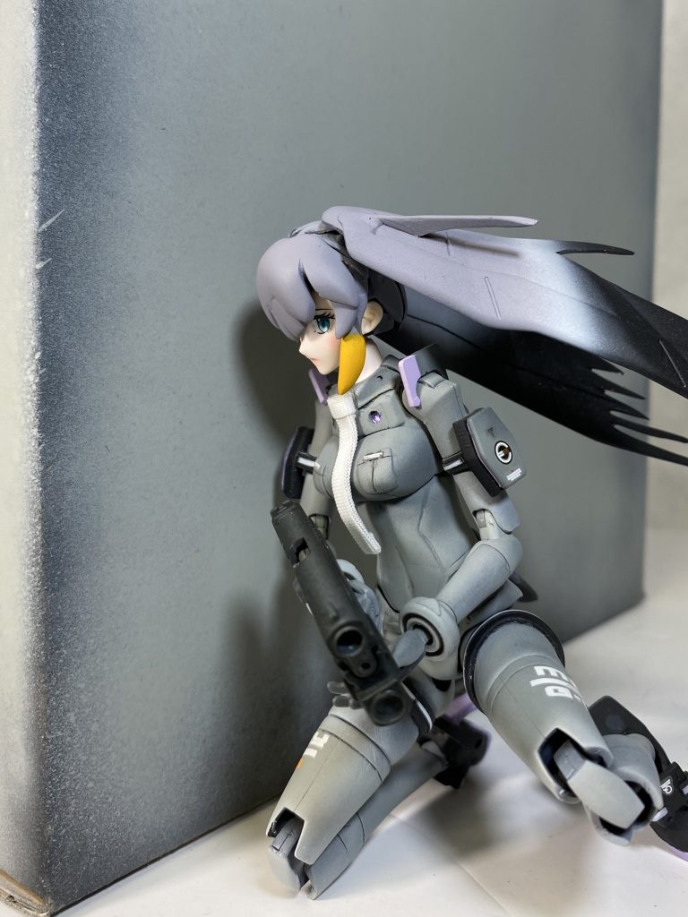 全身グレーのカラーリングなので、短調にならない様、色調を変えたり、ボディラインが綺麗に見える様なグラデーションを