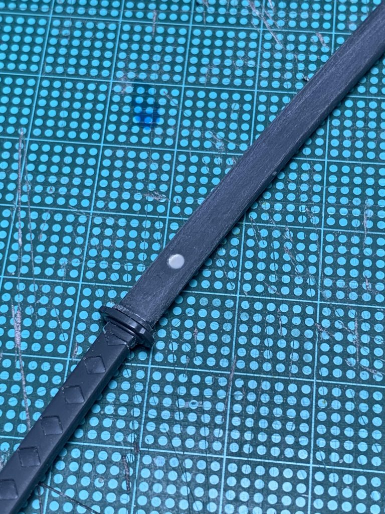 キット付属のハンドパーツを切り貼りして鞘の持ち手を作成。