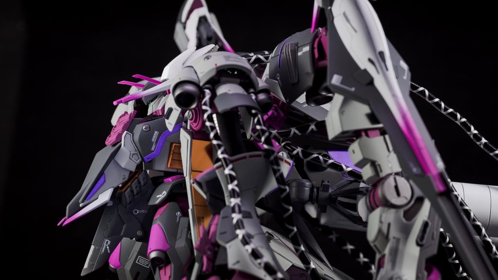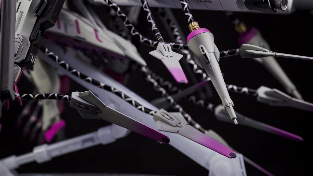 メカらしい部分は残ってるのに、ダムドの手と触手状に繋がれたドラグーン、配色で不気味感マシマシですなぁ。