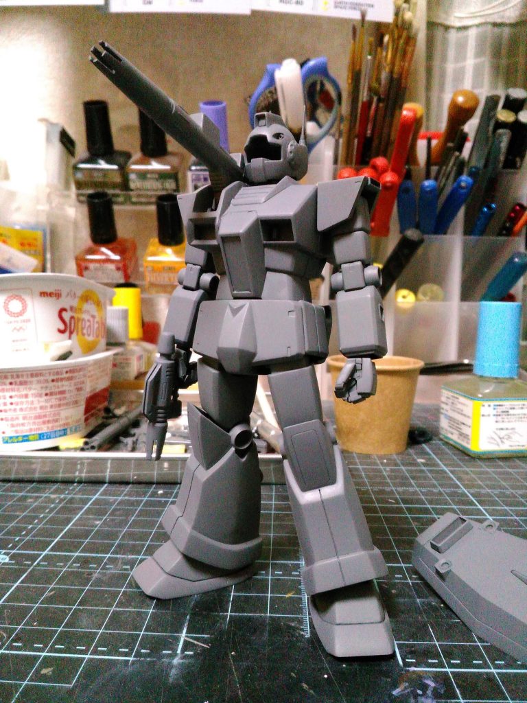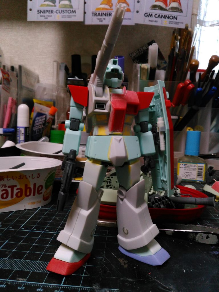 HGUCジムをベースにトレナータイプを作りました。形状変更に…