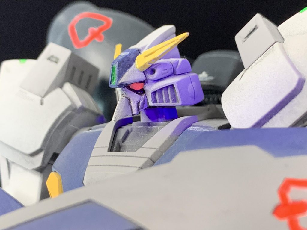 これは、当初1/220 Zガンダムの顔部分を削り込みで合わせようとしましたが、思ったより大きくてディジェの頭におさまらなさそうだったので断念。