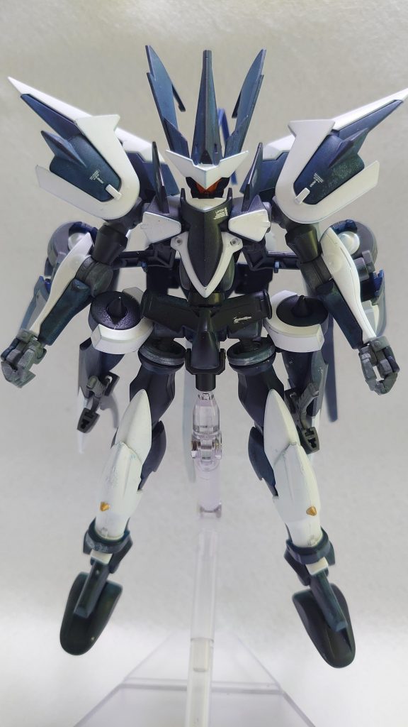 塗装前の下半身はグリムゲルデの物を改造し、スサノオの足が付いていたのですが、上半身の重さに耐えられていなかったので、急遽変更しました